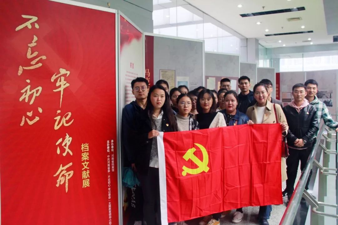 展览共分为“理论探索”“理想信念”“不懈奋斗”“牢记宗旨”“自身建设”“出彩中原”六个部分。珍贵的历史档案和图片,生动地展现了中国共产党始终牢记为中国人民谋幸福、为中华民族谋复兴的初心和使命,再现了中国共产党人为实现初心和使命前赴后继、英勇奋斗的光辉历程,对引导全体学生党员重温党的历史、学习党的理论、提高党性修养具有重要作用。参观过程中,全体师生时而驻足凝视,认真观看着文献资料,回顾着党的艰辛发展史。参观结束后,大家进行合影留念,并纷纷表示会始终牢记初心使命,深入贯彻落实习近平总书记重要讲话精神,砥砺奋斗,积极作为。