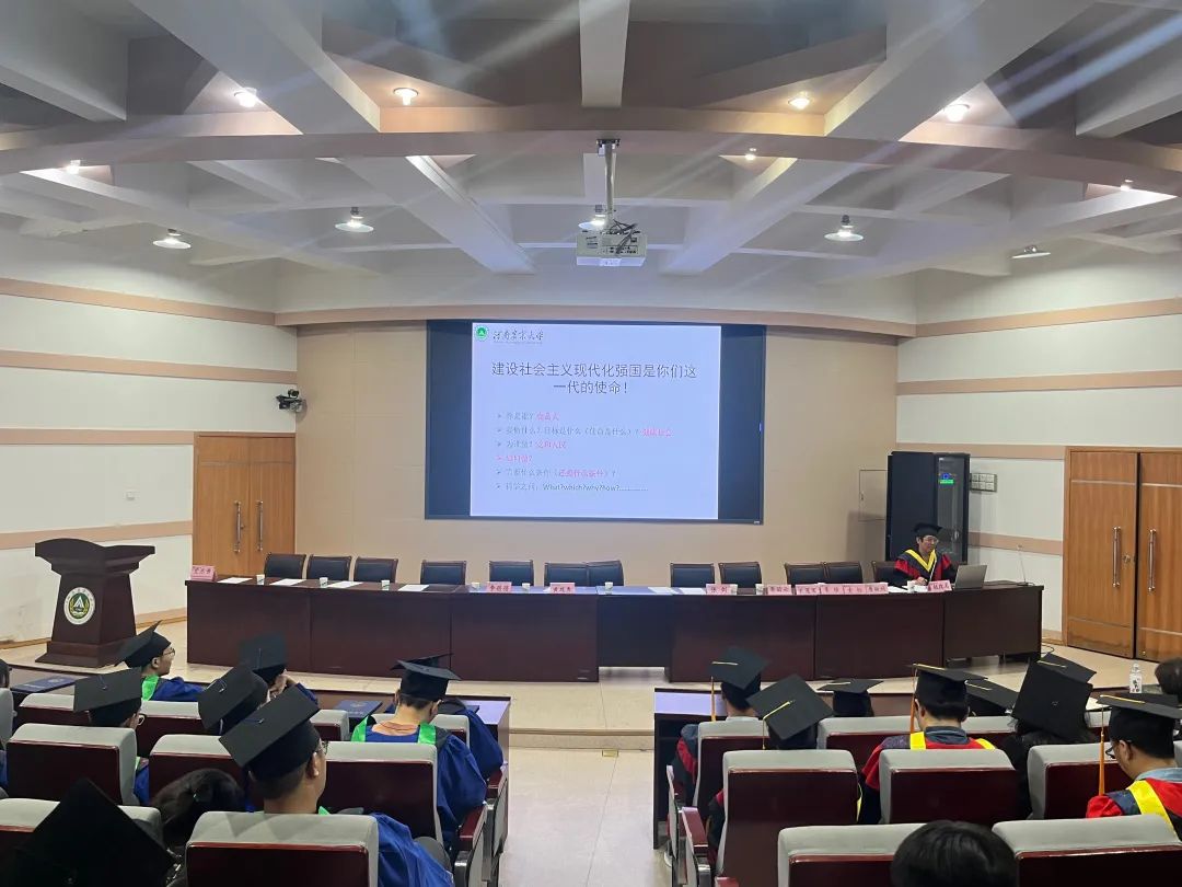 赵改名对2023届毕业生顺利毕业表示热烈祝贺,带领同学们重温了习近平新时代中国特色社会主义思想,结合党的二十大会议精神,以“人生三问”为切入点,结合黄漫