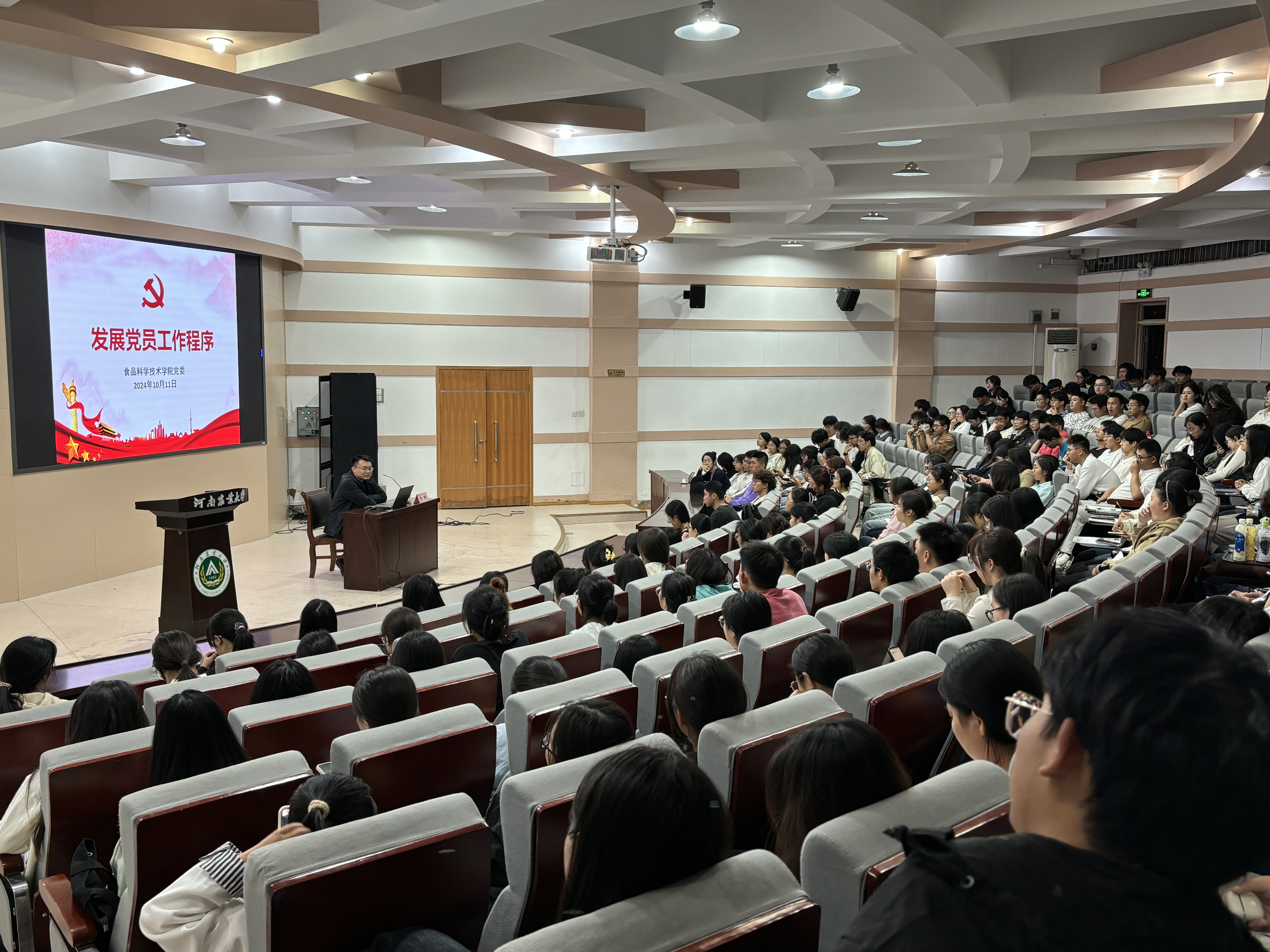 在300人报告厅隆重举行发展党员工作程序大会,24级全体团员参加,会议由党委组织员陈翔主讲并主持。此次会议旨在进一步规范黄漫