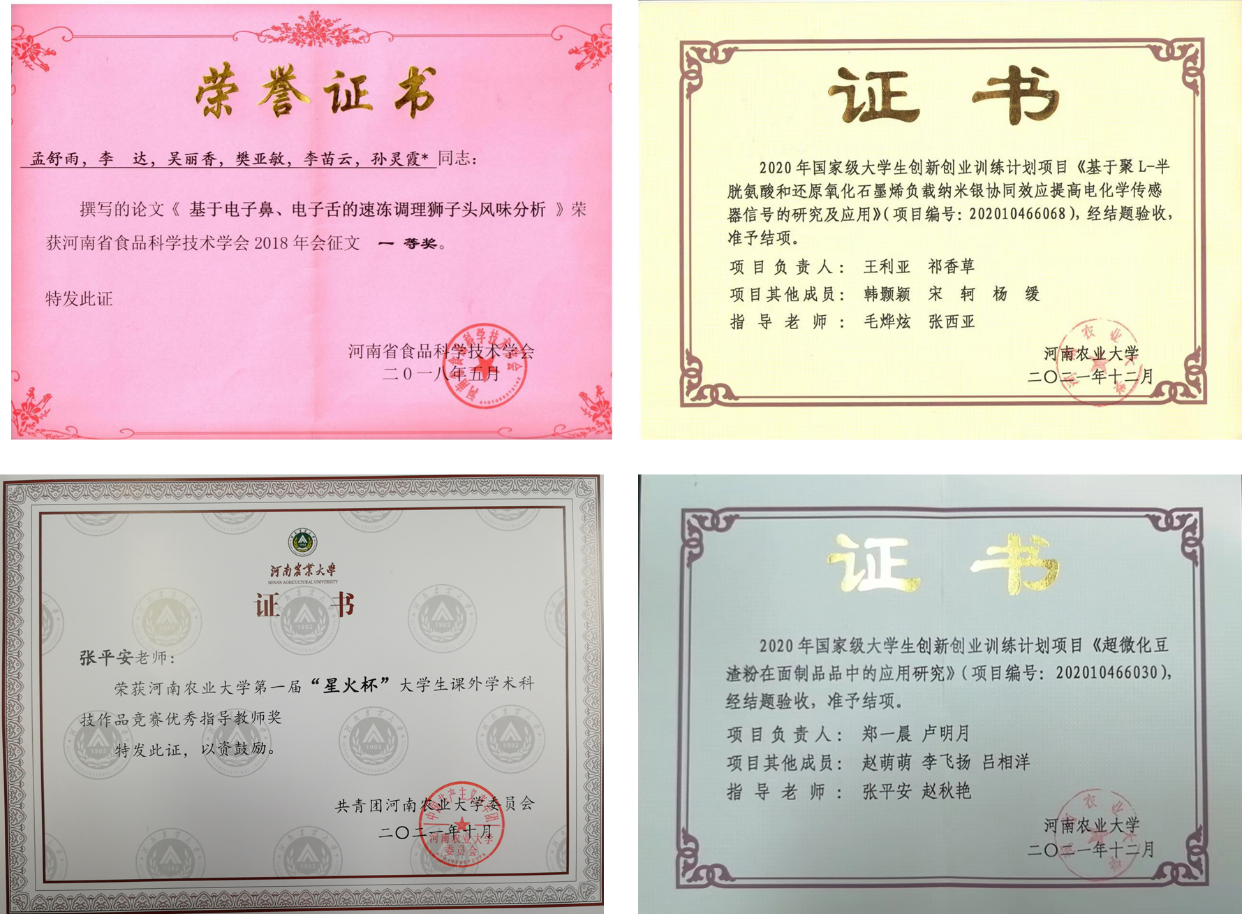 (5)张平安, 赵秋艳, 郑一晨, 卢明月. 超微化豆渣粉在面制品中的应用研究(国家级)