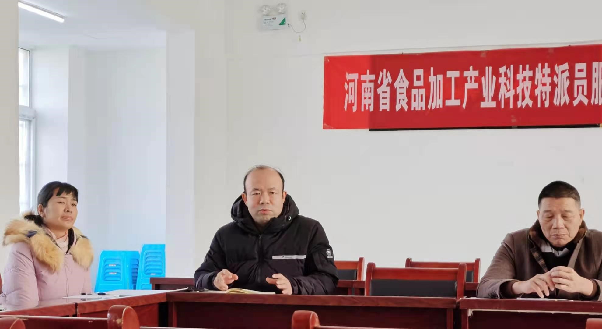科创孵化基地的成立会议于12月4日在河南省膳食纤维饼干研制工程技术研究中心(旷华食品的研发中心)举行,会议由李保平主任主持。李梦琴教授首先介绍了孵化基地建立的意义。通过建立孵化基地,充分发挥“河南省膳食纤维饼干研制工程技术研究中心”的优势,使当地食品企业串联成珠,结合服务团的技术优势,形成“产学研”一体化发展的良好模式,用科技为企业赋能助力,促进上蔡县食品产业高质量发展。