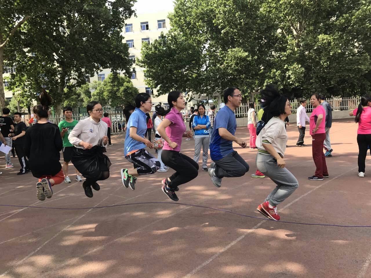 在此次活动中,青年教师们被分为“你追我赶”队、“活力跳绳”队、“齐心协力”队、“心心相印”队4队。在这些活动中,充分考验了学院教职工的沟通互助、团结协作等能力,比赛场面激烈又不失欢乐。教职工们在运动中卸下了生活和工作的压力,锻炼身体的同时放松了心情,浑身散发着青春的活力。此外,工作人员追踪记录比赛进程,拍下各个精彩的瞬间,记录学院青年教职工的青春风采。整个活动气氛热烈、秩序井然,体现了学院教职工的良好精神风貌。