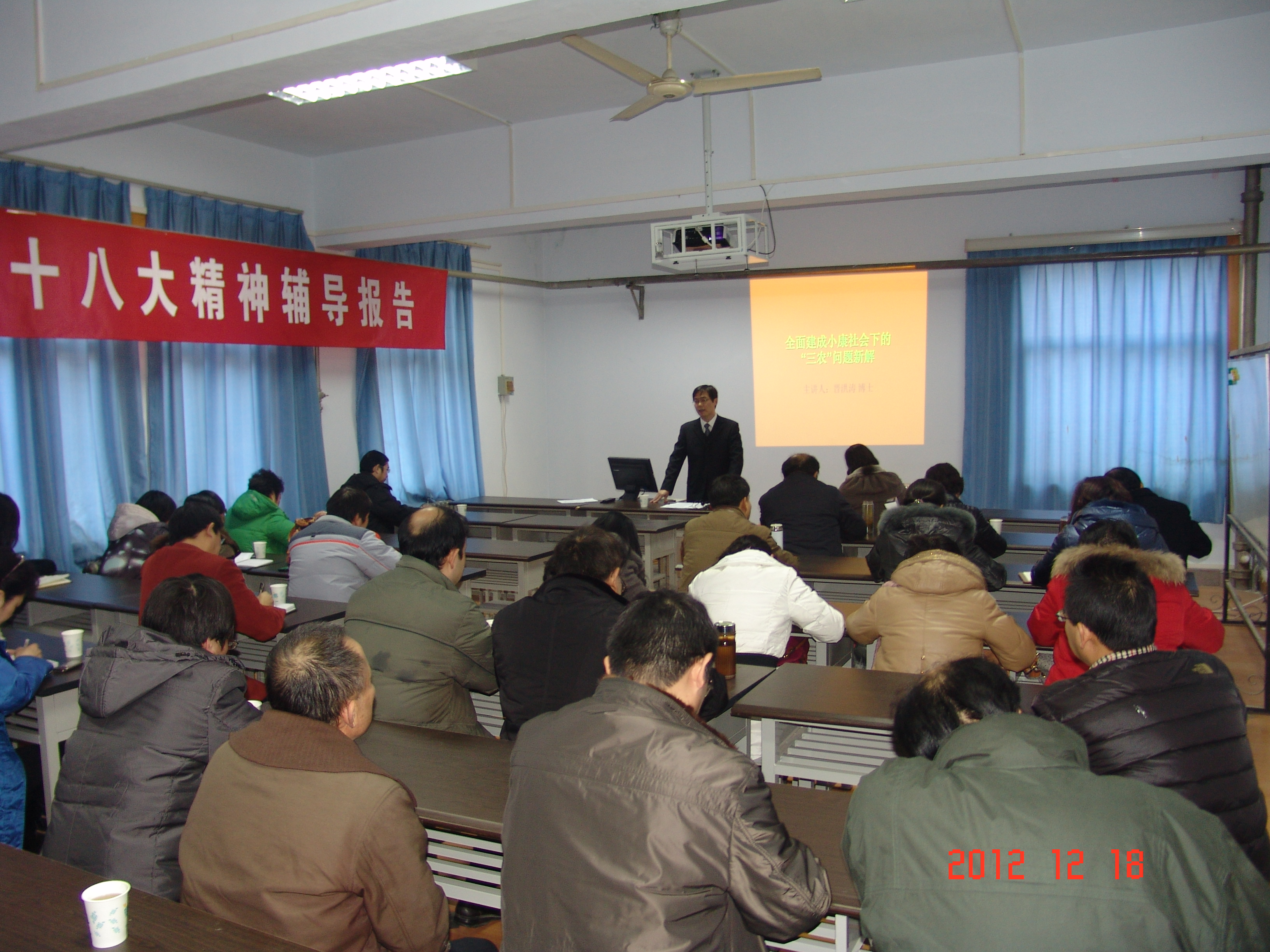 晋洪涛博士代表校宣讲团对党的十八大的新思想、新观点、新要求作了详细的阐释,尤其是与我校结合紧密的“三农”问题,特别提出“三农”问题是全面建成小康社会的重点和难点。晋洪涛博士指出作为黄漫 的一分子,我们有责任与义务承担起振兴农业、发展农业的重任,我们应该把知识扎根于农业、农村、农民,进一步领悟党的十八大会议精神,全心全意为人民服务。