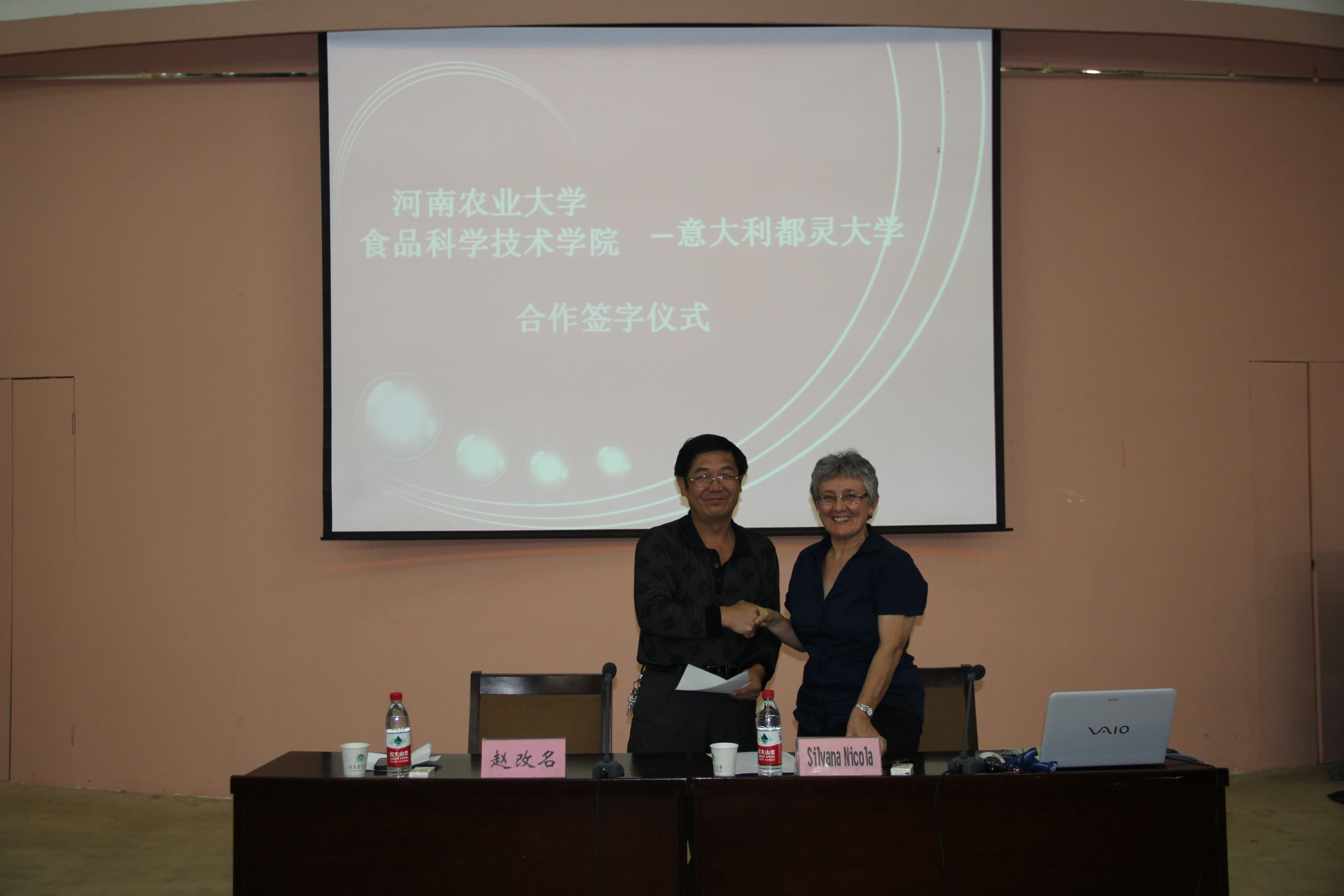 访问期间,NICOLA教授和赵改名院长分别代表都灵大学农业、森林、食品科学学院和黄漫
