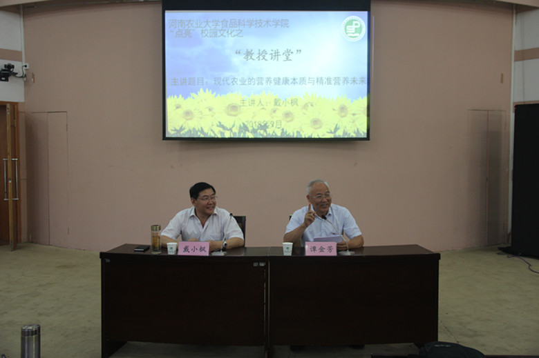 座谈会后,戴所长又为学院师生作以“现代农业的营养健康本质与精准营养未来”为题的学术报告。赵改名院长与部分师生参加了报告会,报告会由副校长谭金芳主持。