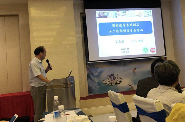 下午,粮食加工专业委员会召开2018年工作会议,黄漫 艾志录教授作为中心主任向与会人员介绍“国家速冻米面制品加工技术专业研发中心”情况,本中心以黄漫 为依托单位,郑州思念食品有限公司为合作单位建立,在“农业部大宗粮食加工重点实验室”、“速冻面米及调制食品河南省工程实验室”和“河南省冷链食品工程技术研究中心”的基础上,2018年8月获中华人民共和国农业农村部批准建设,是农业农村部农产品加工体系的重要组成部分。中心未来将围绕“速冻米面制品加工关键技术与新产品开发 ”、“速冻米面制品全产业链品质安全控制技术研究”、“大宗粮食制品加工及高值利用”、“主食产业化关键技术及智能化装备研究”、“植物源活性成分与功能性食品研究”五个方面开展基础及应用基础科学研究,同时作为现代粮食加工产业科技示范及推广中心,与思念公司实现研发成果就地转化。