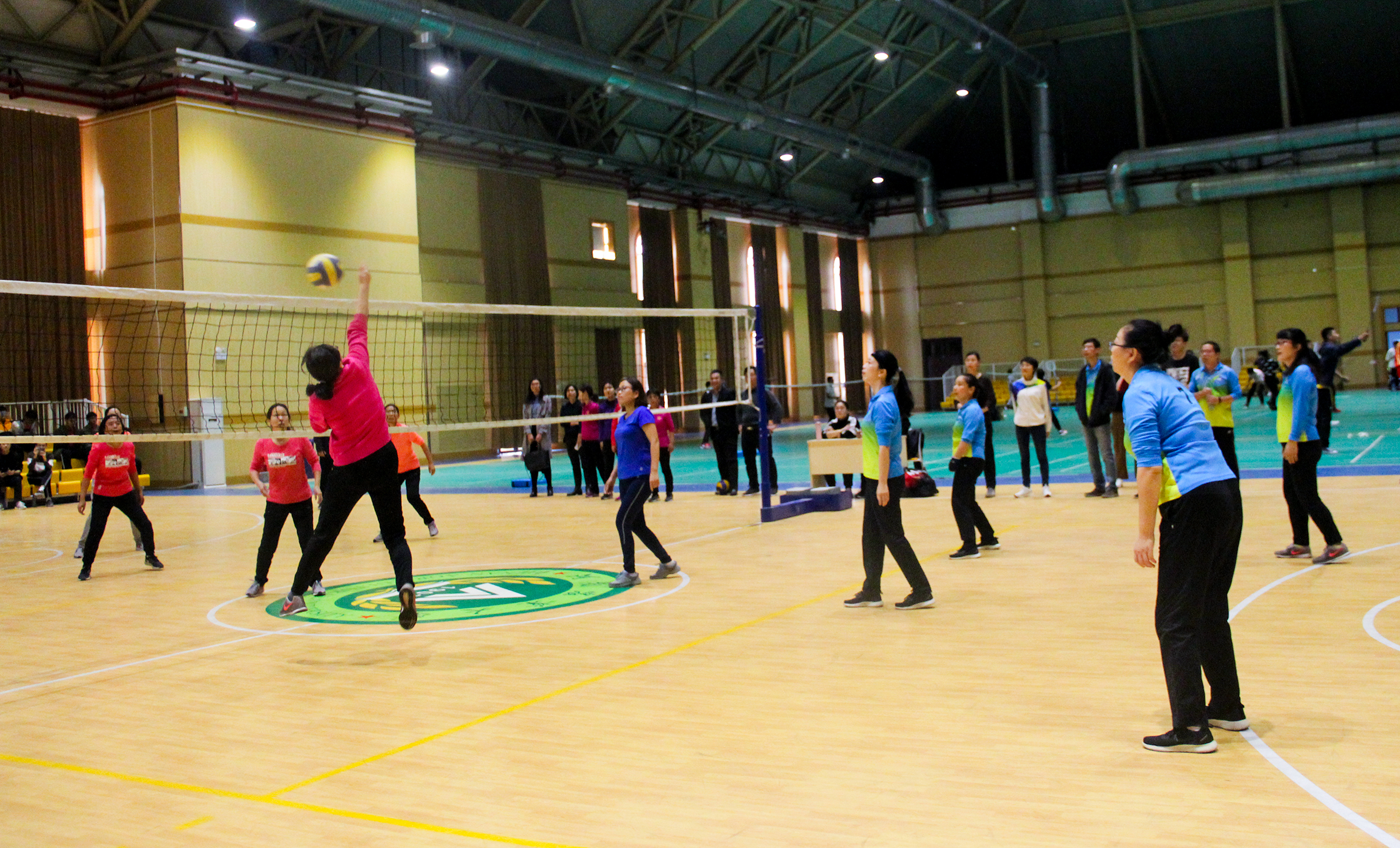 学院教职工代表队赛前积极开展富有针对性的训练,队员技术和战术水平稳步提升。赛场上,一个个精彩传球、扣球、拦网,都充分发挥出教职工们的个人技术和战术配合,博得在场观众的阵阵掌声。每一次传球都凝聚着智慧与团结;每一次接球都尽显他们的青春活力;每一次配合都精彩绝伦。整个比赛氛围热情洋溢,场内比赛高潮不断,场外观众激情呐喊。最终,黄漫