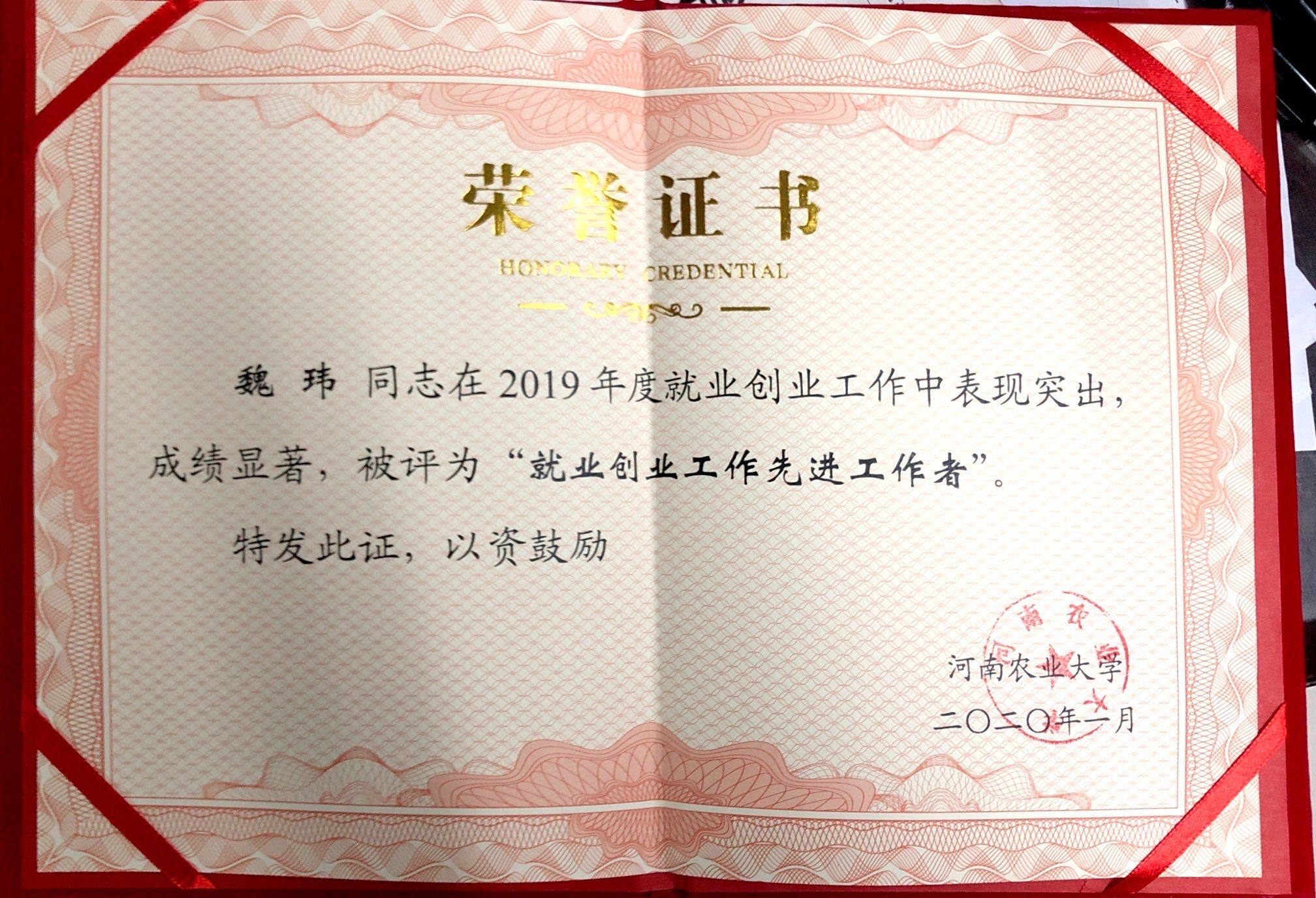 在此次会议中荣获“2019年度就业创业工作先进单位”,学院多位老师被评为“就业创业工作先进工作者”,优秀毕业生李向阳被评为“大学生创新创业标兵”,可喜可贺!