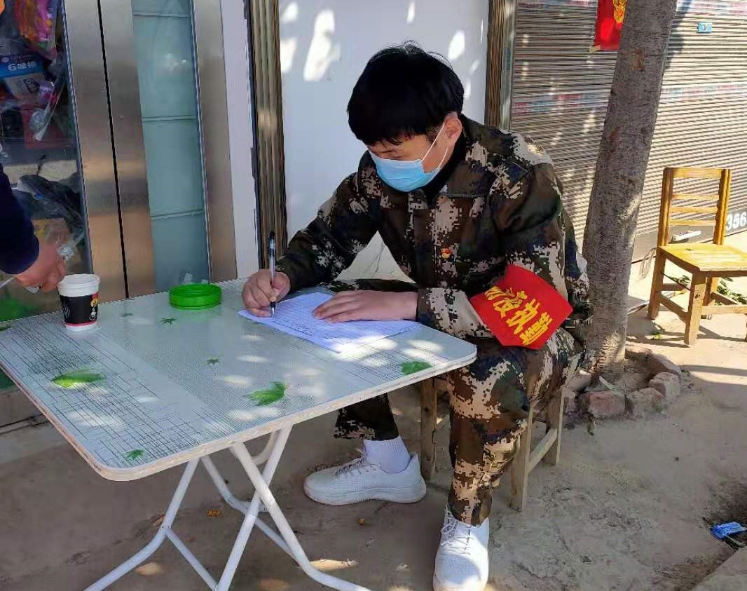 寒假期间响应号召,河南农大食品学院2015级学子李达主动加入安徽省阜阳市太和县税镇镇陶寨行政村前坡的疫情防控队伍,主要工作是定点劝返无故进出村的村民以及流动劝返在马路上聚集的村民。李达认为作为一名学生党员,有责任、有义务去奉献自己的一份力量,同时也希望带动更多的党员、团员以身作则,在保护好自身的前提下主动投身到疫情防控一线去,争取早日打赢这场疫情狙击战!