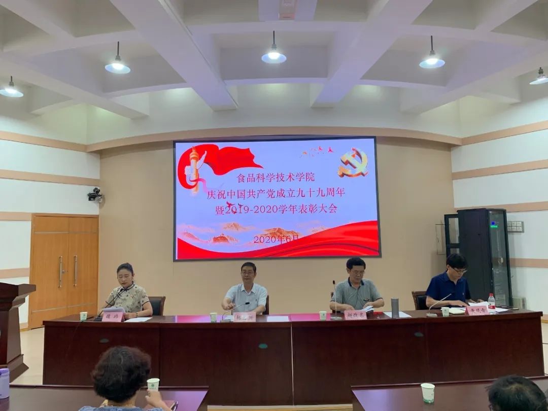 2019-2020学年优秀班主任的决定》等相关表彰文件,并为受表彰个人颁发荣誉证书及奖品。随后,优秀共产党员、校优秀党务工作者高晓平和优秀班主任王凡作为典型代表发言。之后,院党委书记杨喜洲发表讲话,表达了对中国共产党成立九十九周年光辉历程的自豪与赞扬,并结合学院工作提出三点要求:希望全体教职工凝心聚力,担当作为,全面加强党的建设;牢记使命,履职尽责,全面加强学科建设;围绕中心,明确重点,全面落实各项工作任务。