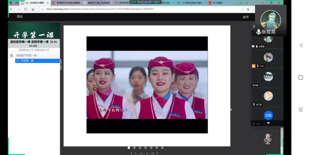 “返校复学第一课”视频,校党委书记魏蒙关、校长张改平讲话及师生代表进行发言。他们表示,欢迎同学们安全返校,希望同学们能调整心态,积极面对新学期的学习任务,切实增强、提高疫情防控意识和能力。