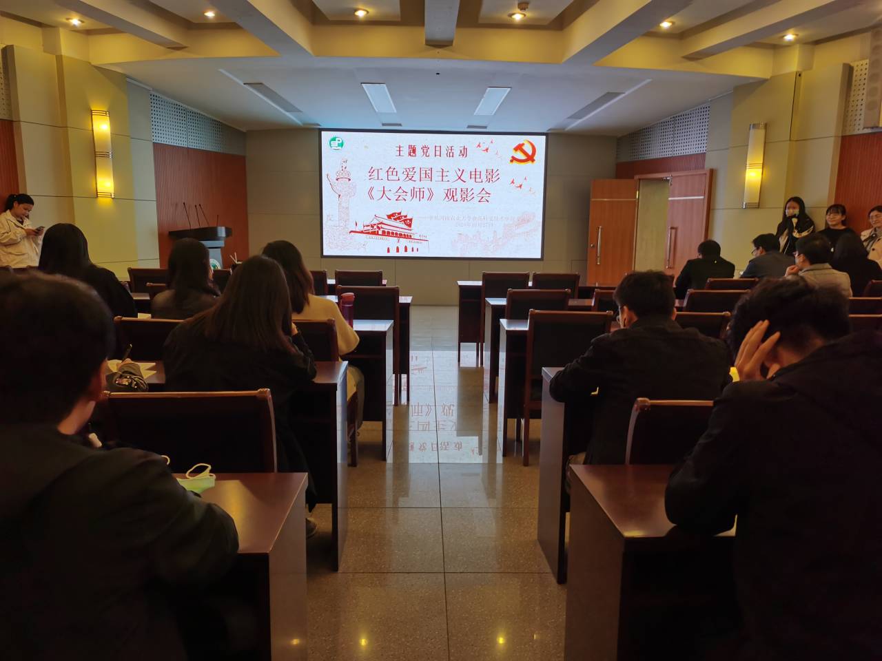 师生党员在文化路校区100人报告厅参加了红色电影观影活动,集体观看了重大革命历史题材电影《大会师》。