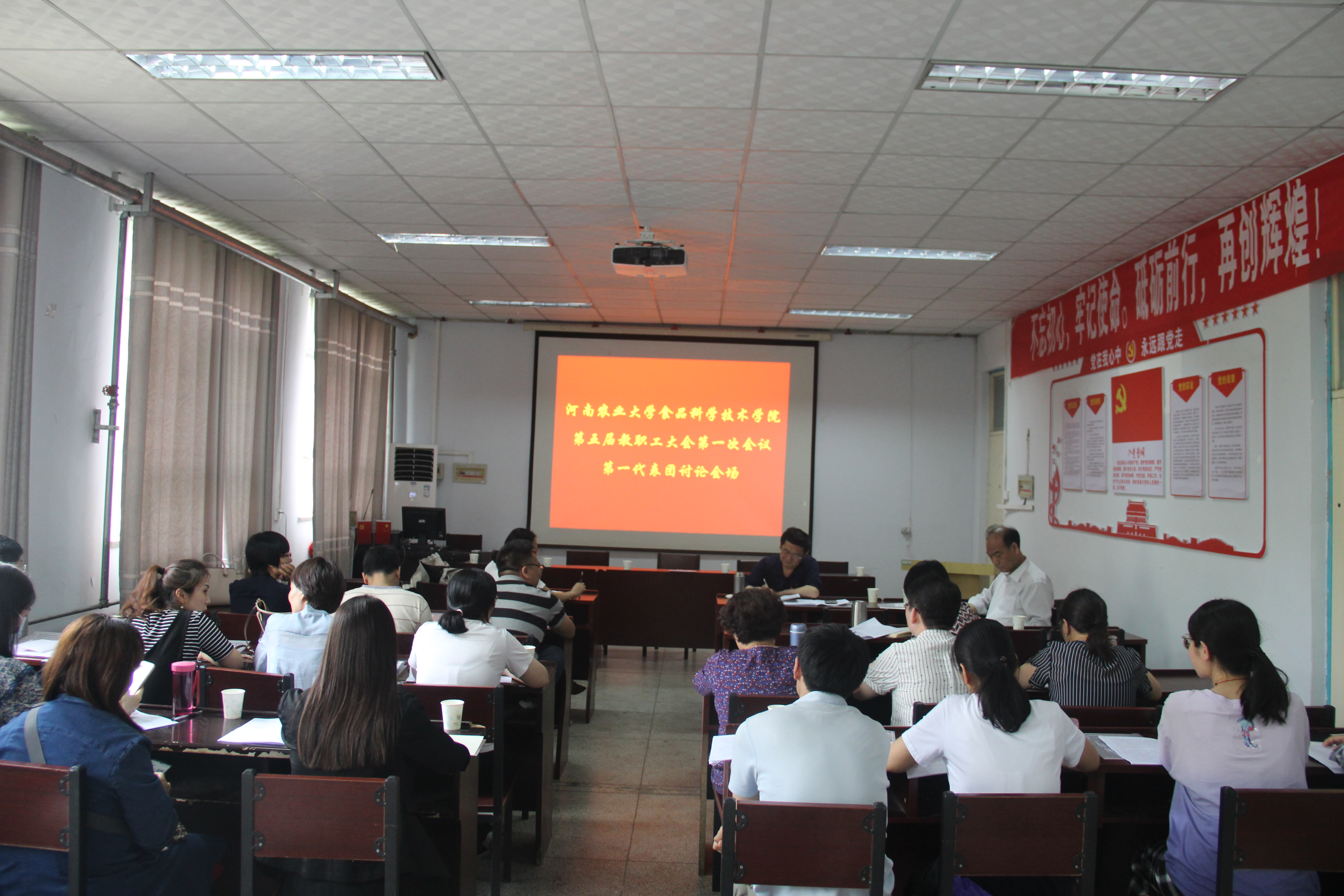 在学院报告厅隆重召开了第五届教职工大会第一次会议。学院全体教职工参加。大会由学院副书记李蓓蓓主持。会上听取并审议了黄现青院长作的《院长工作报告》,学院分工会主席、学院副书记李蓓蓓的《工会工作报告》,并审议了谢新华副院长提交的《关于2020年财务预算执行情况及2021年财务预算的报告》。