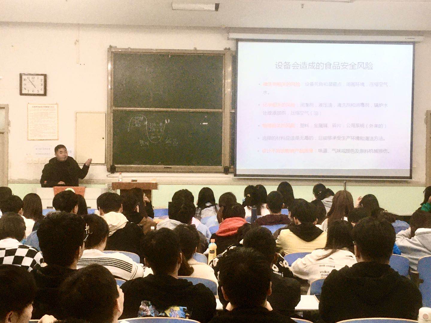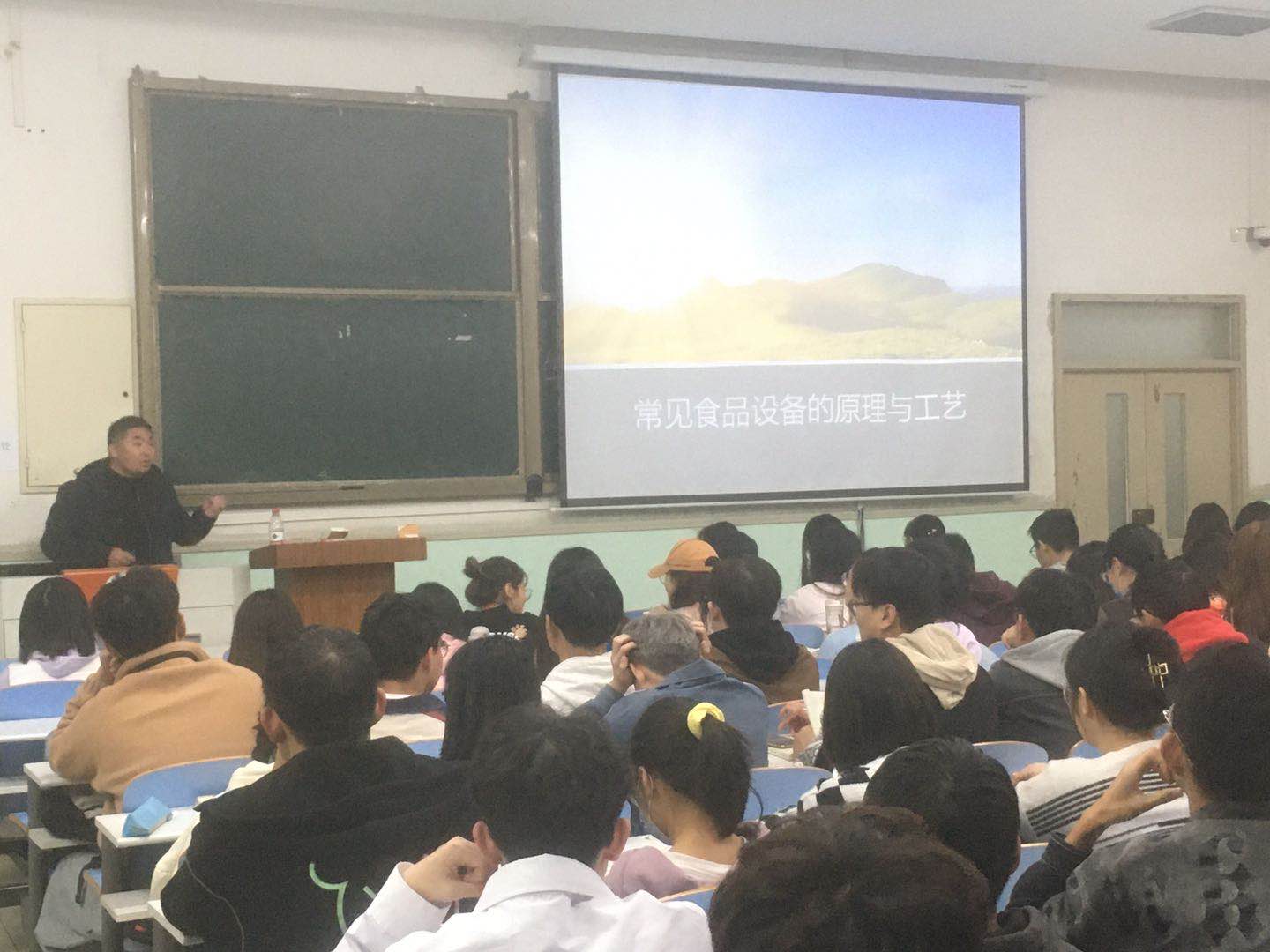 19级食品科学与工程专业的学生们上了一堂有关食品加工中常见机械与设备的原理以及卫生设计课,王总结合工厂生产实际,以速冻水饺的生产为例,从蔬菜的清洗、和面、成型、包装等方面,并结合设备的设计标准,以及实际操作中的卫生清洗、使用、维修等,进行了详细的讲解和分析,使得学生了解到了目前食品生产一线的机械装备使用情况,先进的设计标准及理念,增强了学生的工程认知和实践能力。