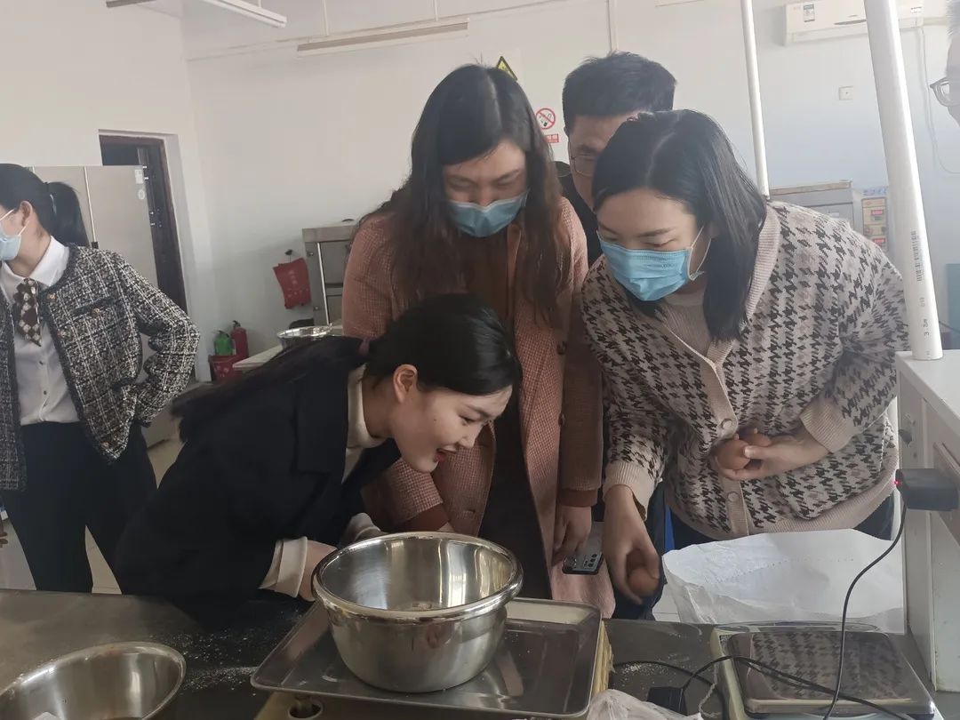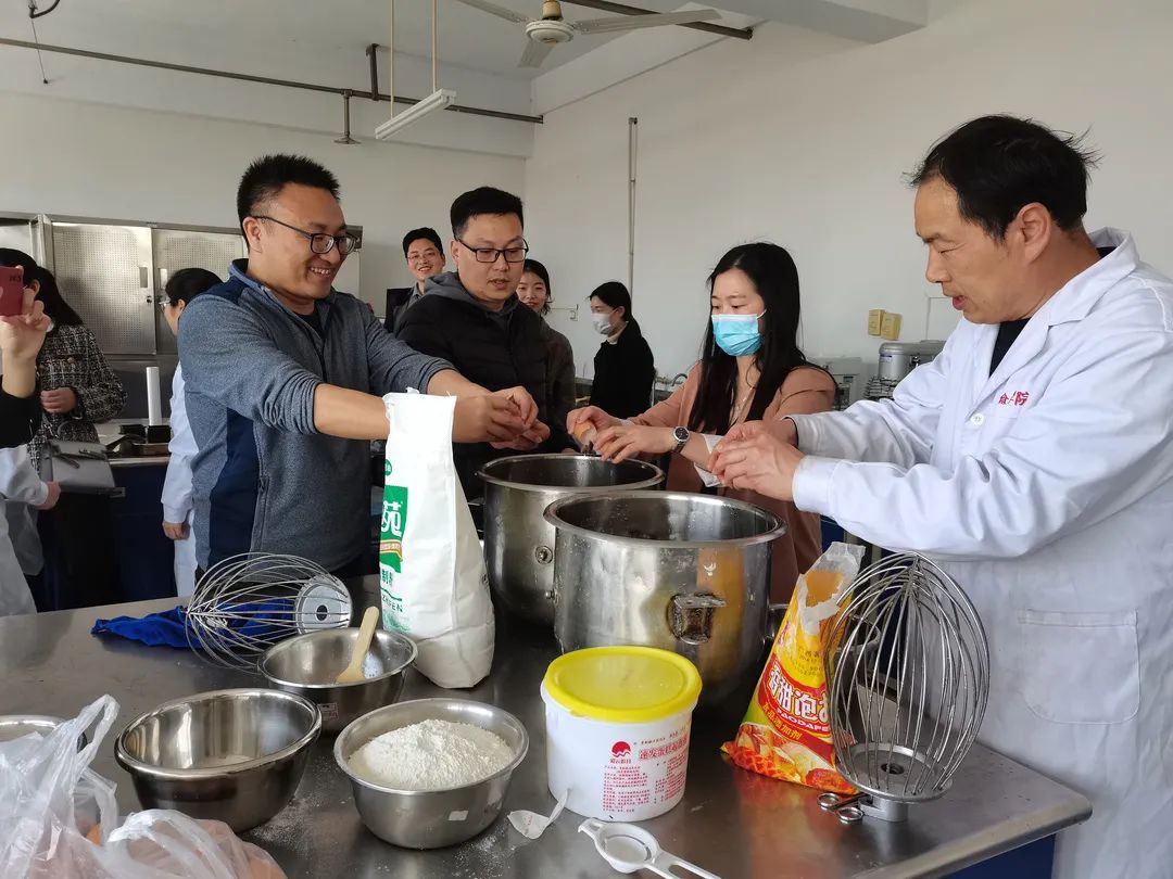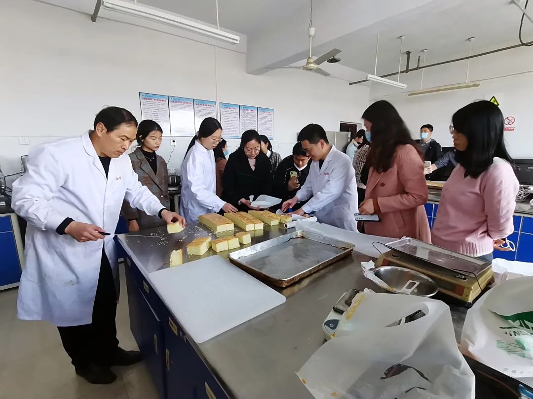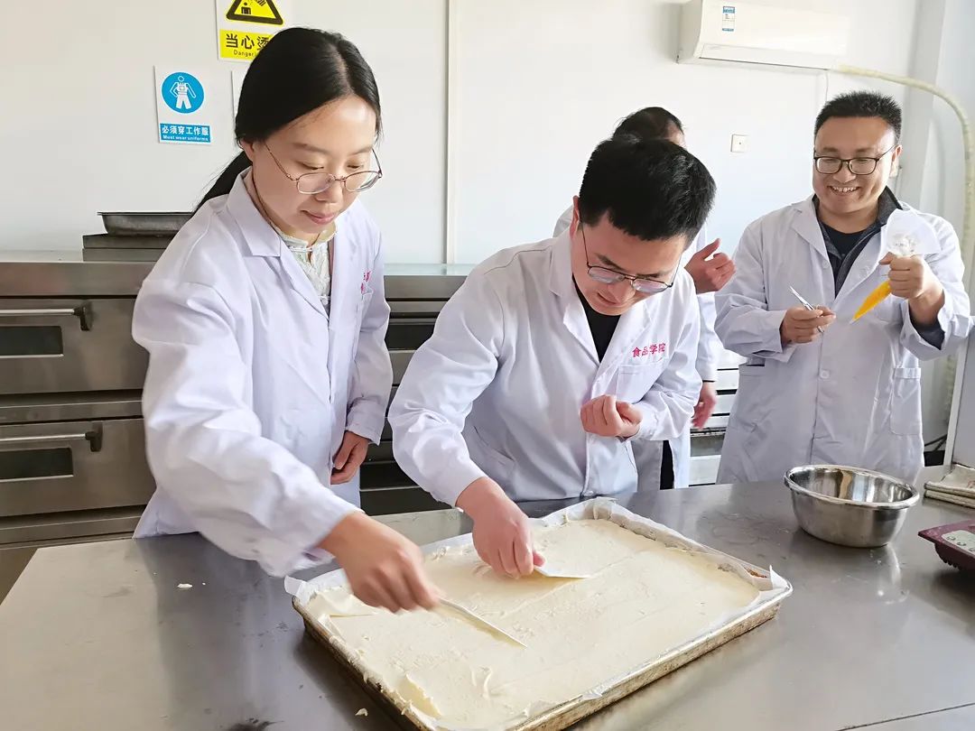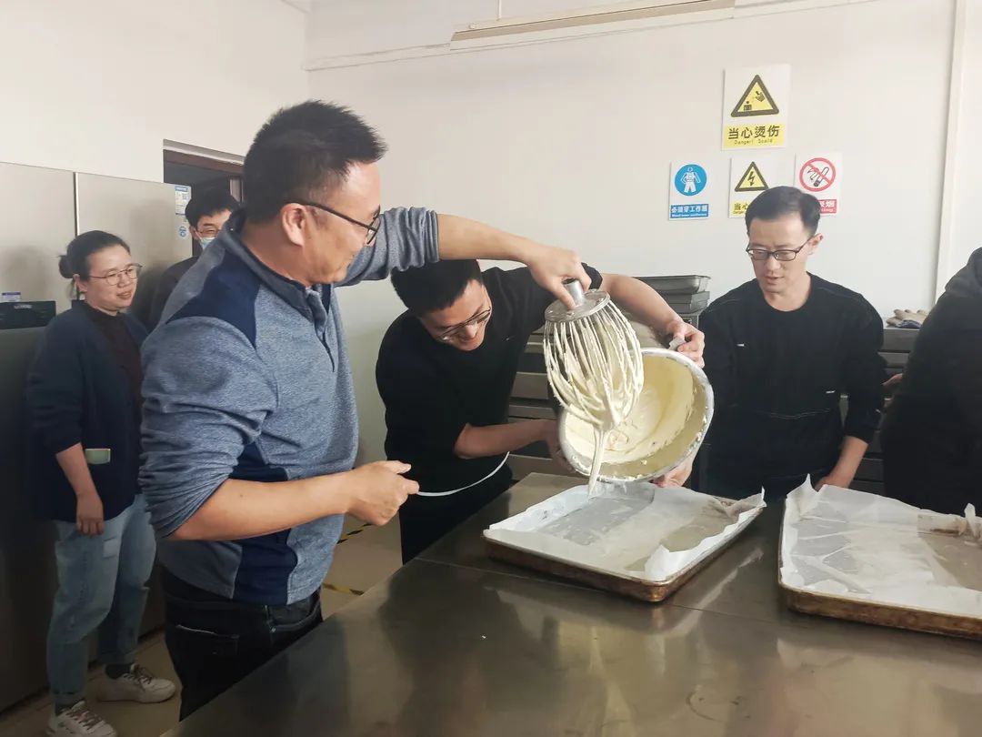 于推广楼七楼食品工艺学实验室开展教职工制作蛋糕活动,全体教职工参加。