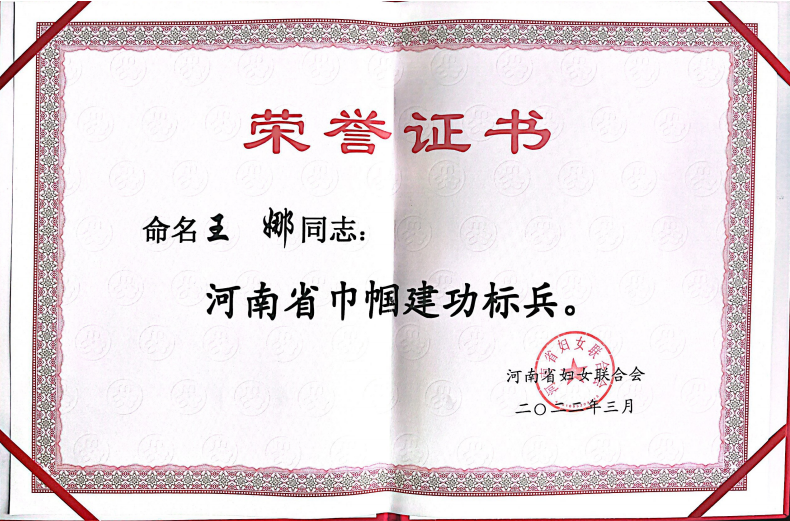 王娜老师荣获河南省“巾帼建功标兵”荣誉称号。