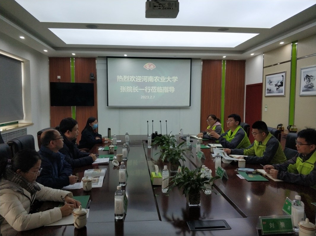 副院长张剑、食品科学与工程系主任柳艳霞、食品营养与健康系主任高晓平、食品质量安全系副主任孙灵霞、学院教学秘书李家寅一行5人赴河南安井食品有限公司洽谈“产教融合、协同育人”相关合作事宜。