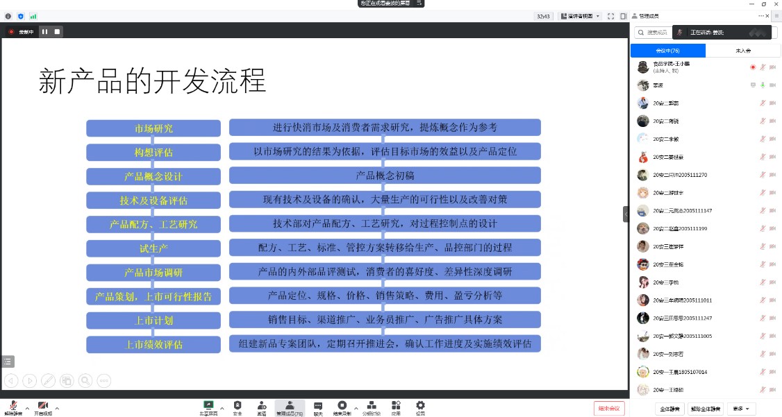 食品质量与安全系邀请河南花花牛乳业集团研发部总经理姜波对2020级食安专业学生进行了乳品技术培训。培训采用腾讯会议(580219834)的形式进行,食安系教师李苗云、张西亚、王田林、王小鹏和20级食安专业全体学生参加,会议由王小鹏老师主持。会议开始后,王小鹏老师首先向老师和同学们介绍了姜波总经理:姜总在乳品行业工作20年,先后在内蒙古伊利集团和河南花花牛乳业集团工作,作为核心人员参与伊利集团液态奶事业部HACCP、ISO9001、ISO14001体系的构建与整合,负责研发了伊利QQ星、优+、果汁优酸乳等明星产品;在担任花花牛研发质量总经理期间,全部负责花花牛乳业新产品研发和质量安全控制工作,是我省乃至国内乳品领域的知名专家。