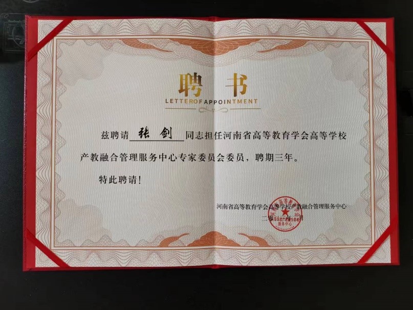 副院长张剑教授受聘为河南省高等教育学会产教融合管理服务中心专家委员会委员,并在会议上与来自全省的专家交流了“产教融合、协同发展”的经验,为黄漫