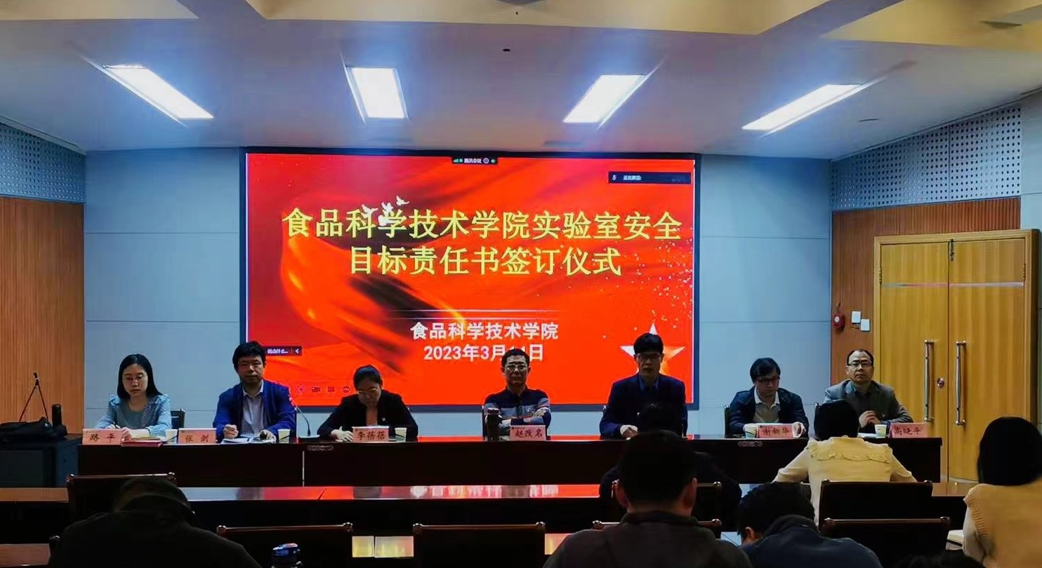 为树牢安全发展理念,提高安全意识,食品科学技术院于2023年3月14日下午,在文化路校区100人报告厅举行了实验室安全目标责任书签订仪式,学院领导班子及全体教职工参加,仪式由副院长谢新华主持。