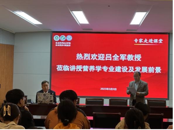 首先,张院长介绍了黄漫 的基本情况,高老师介绍了食品营养与健康专业的培养方案和目标。吕全军教授以“加强专业综合改革,提高人才培养质量”为主题介绍了专业设置、相关政策及专业综合改革措施,并对黄漫 食品营养与健康专业培养方案提出相关建议,双方就课程重点、营养实践等问题展开了讨论。
