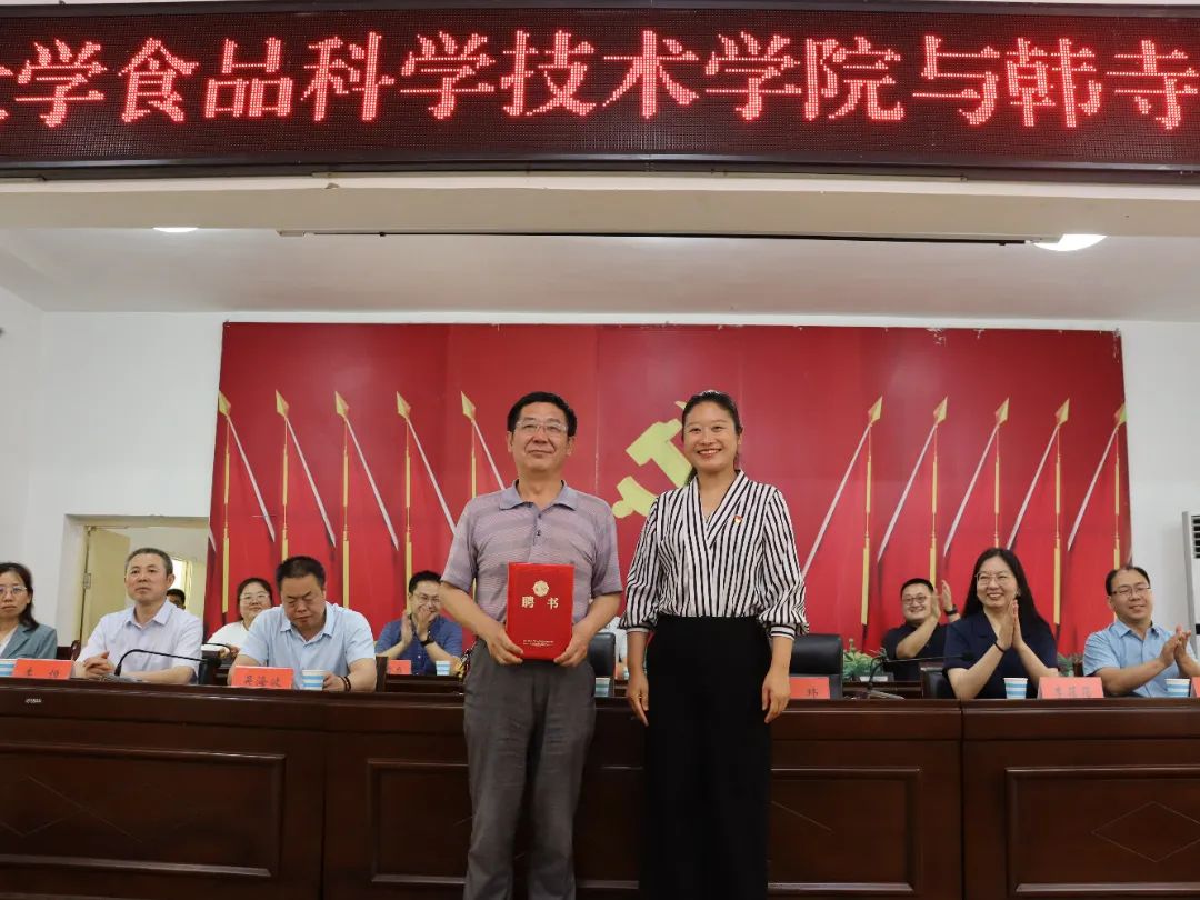 会上,中牟县委副书记、韩寺镇党委书记魏玮为院党委书记赵改名教授颁发了专家聘书。