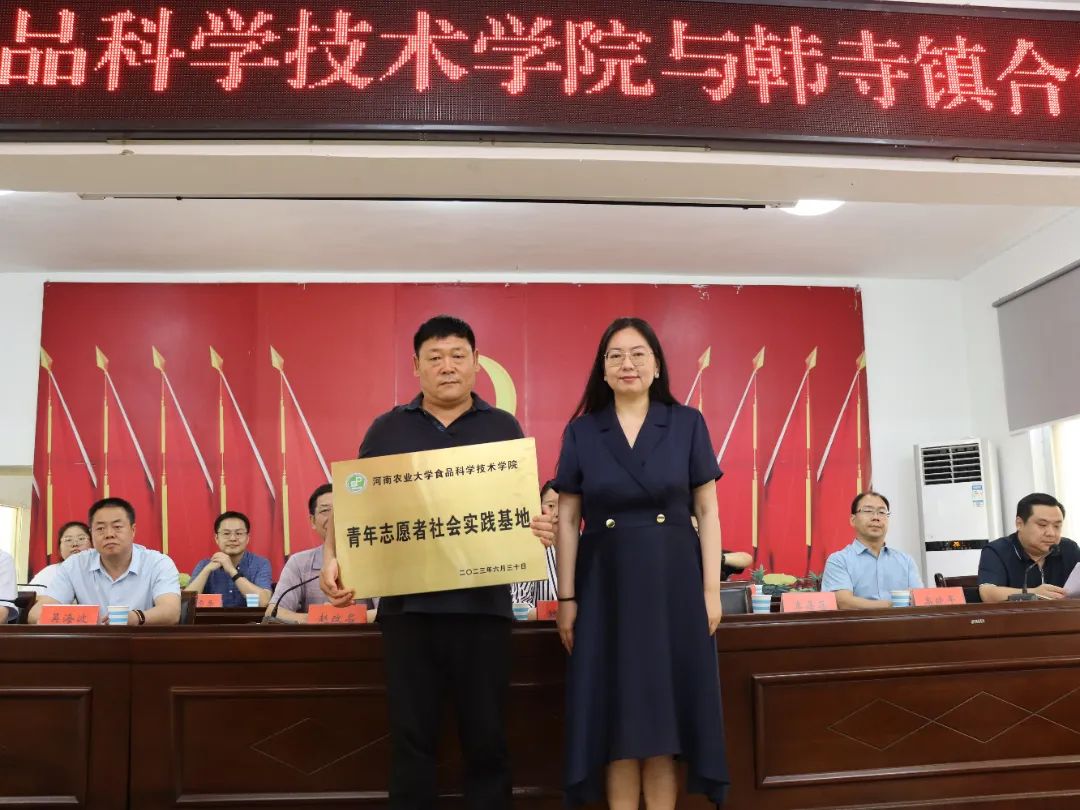 大学生社会实践基地揭牌仪式在中牟县韩寺镇人民政府举行,中牟县委副书记、韩寺镇党委书记魏玮、副县长吴海波、韩寺镇全体班子成员,院党委书记赵改名、院党委副书记李蓓蓓及学院相关负责同志、专家、师生代表参加“黄漫
