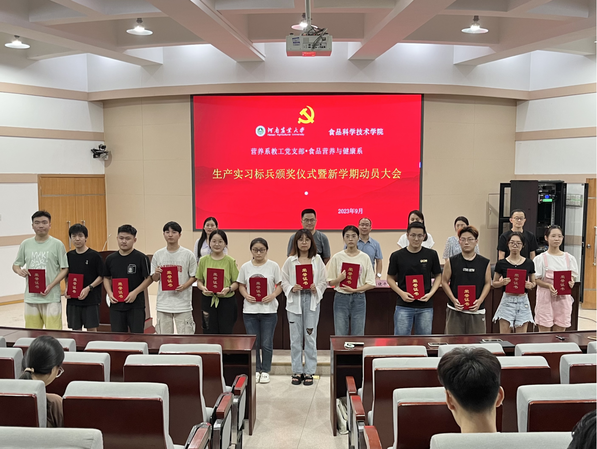 (通讯员 海丹 渠杨柳 徐浩东)2023年9月8日,食品营养与健康系在三百人报告厅举行了食品营养与检验教育专业生产实习标兵颁奖仪式暨新学期学习动员大会。出席会议的主要有20级食检专业全体学生和生产实习带队老师。会议由海丹老师主持。