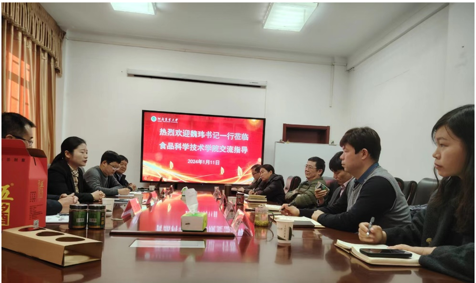 院长黄现青对中牟县委副书记魏玮一行的来访表示热烈欢迎,详细介绍了学院的学科与师资队伍建设、教育教学与人才培养、科研和社会服务等基本情况。魏玮副书记介绍了中牟县韩寺镇的大酱产业现况,王占领总经理详细介绍了与学院进行合作的重点领域和方向。