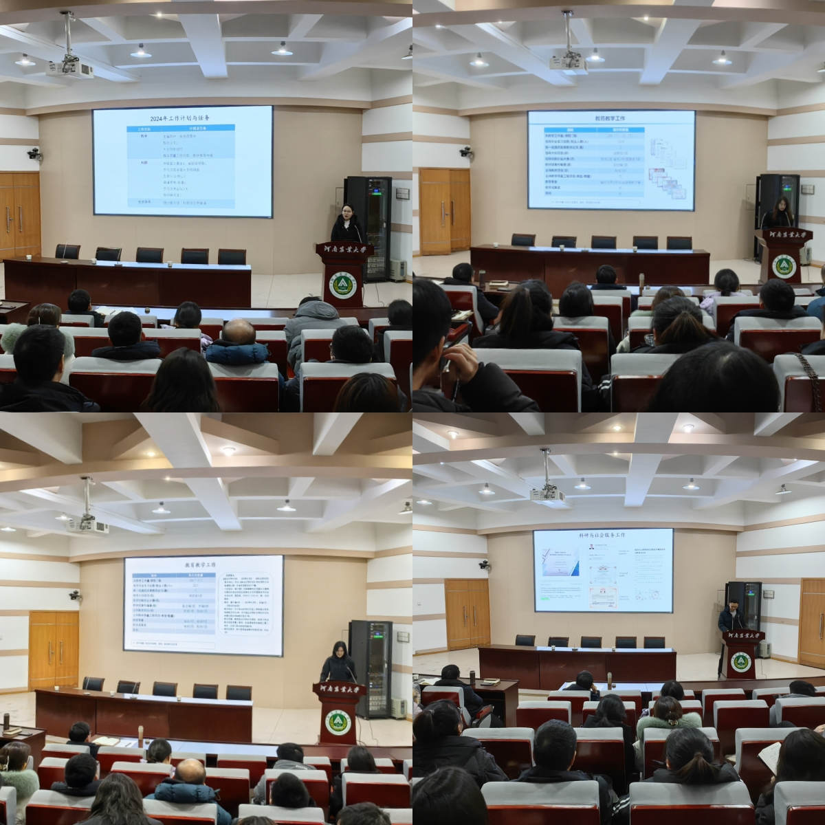 在全院教职工大会上,副书记李蓓蓓传达了学校安全工作会议的核心内容,详述了学院在校园消防安全、用水用电安全、实验室安全以及学生宿舍安全等方面所展开的工作,同时要求教职工做好假期内学生去向登记以及校园安全排查,保证大家过一个欢乐祥和的新春佳节。院长黄现青再次对青年教师进行了鼓励,并在教学和科研领域给出了意见和建议。对于学院课程建设、教学质量提升、国家基金申请、博士点申报等方面,黄院长也做出了详细的要求和规划。院党委书记赵改名对大会进行了总结发言并提出了殷切希望:首先是既要志存高远,又要脚踏实地,合理设计科研计划和目标。其次是要自觉增强学科建设的紧迫感和使命感。