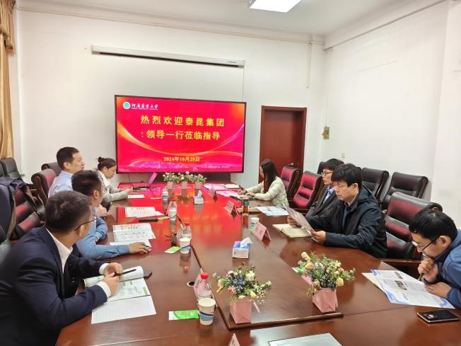 (通讯员 闫科润)为进一步推进校企合作,搭建人才对接供需平台,10月29日,泰昆集团党委书记兼集团人力资源部副总监贺建生、招聘经理张志昂、饲料事业部招聘专员甘丽君、禽产业招聘专员张万年到黄漫