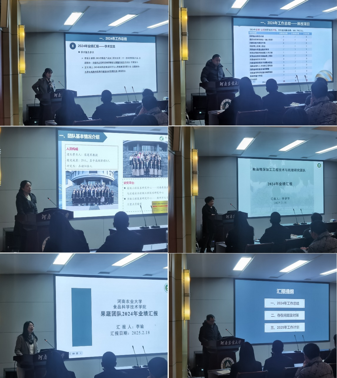 会上,肉品、速冻、营养、粮油、果蔬、功能食品团队的负责人依次上台,对各自团队在2024年的科研成果、项目进展、团队建设等方面进行了详细汇报。各团队在过去一年中积极开展科研创新,承担多项重要科研项目,取得了一系列具有影响力的研究成果。
