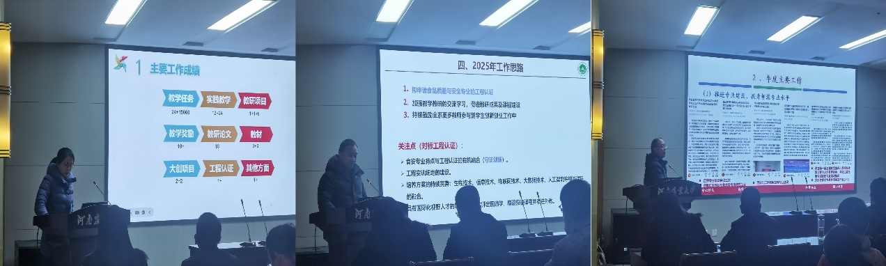 食工、食安、营养三个系以及科研、教学秘书也对各自的工作进行了梳理。各系在专业建设、课程改革、人才培养等方面成果显著,教学秘书与科研秘书则在日常教学管理与科研服务中发挥了关键作用,保障了教学与科研工作的有序进行。