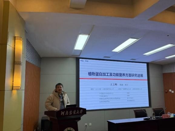 座谈伊始,黄现青院长代表学院对王立峰教授的到来表示热烈欢迎,并对王立峰教授进行介绍。随后王立峰教授以“植物蛋白加工及功能营养方面研究进展”为主题,详细介绍了其团队在蛋白/肽提取制备纯化新工艺、蛋白界面性质提质增效高值化、蛋白应用场景的新型配料加工技术和蛋白活性肽作用机制及构效关系等领域的最新研究成果。与会师生纷纷表示,汇报内容不仅带来了前沿的学术理念,更拓宽了大家的学术视野,受益匪浅。最后,黄现青院长在总结发言中强调,师生们在开展科研工作时,应深刻思考课题的出发点与意义,研究方向应紧密结合产业需求,注重科研成果的转化与应用。