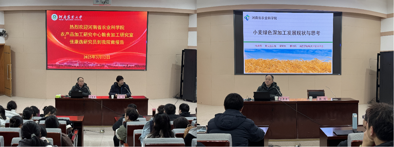 ,为学院2022级食品科学与工程专业学生做专题学术报告——小麦绿色深加工发展现状与思考。报告会在文化路校区300人报告厅举行,副院长张剑出席报告会并主持,学院教师以及2022级食品科学与工程专业全体学生现场参会。