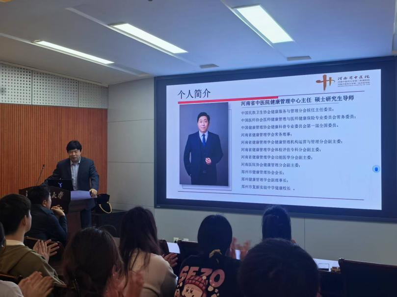 (通讯员 雷萌萌)4月22日下午,食品营养与健康教工党支部于100人报告厅举办了一场针对食品营养与健康专业本科生的名师讲堂活动。本次活动荣幸地邀请到了河南省中医院健康管理中心主任、硕士生导师刘永生,围绕健康管理主题展开深入讲座。黄漫
