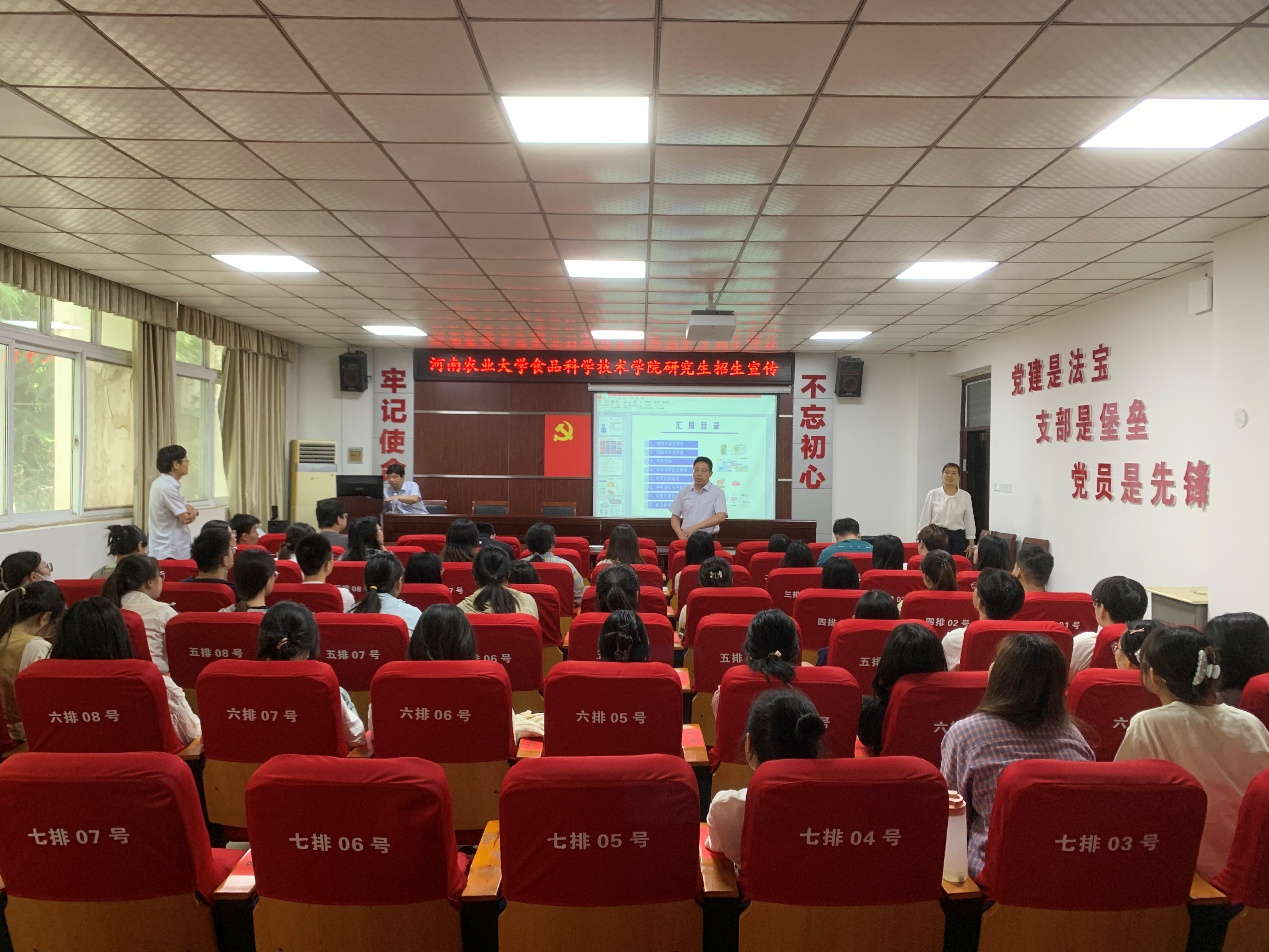 的办学实力,并重点介绍了畜产品加工、主食及速冻食品、食品营养与安全、粮油精深加工、果蔬加工与品质调控、功能与健康食品六大特色科研团队,使同学们对学院的研究生培养特色有了更深入的了解。最后,在互动交流环节,张剑副院长、安艳霞和程李琳老师耐心细致地解答了学生们提出的各种问题,现场气氛热烈,与会学生纷纷表示,通过此次宣讲会,不仅对考研政策有了更清晰的认识,也对未来的研究方向有了更明确的规划。