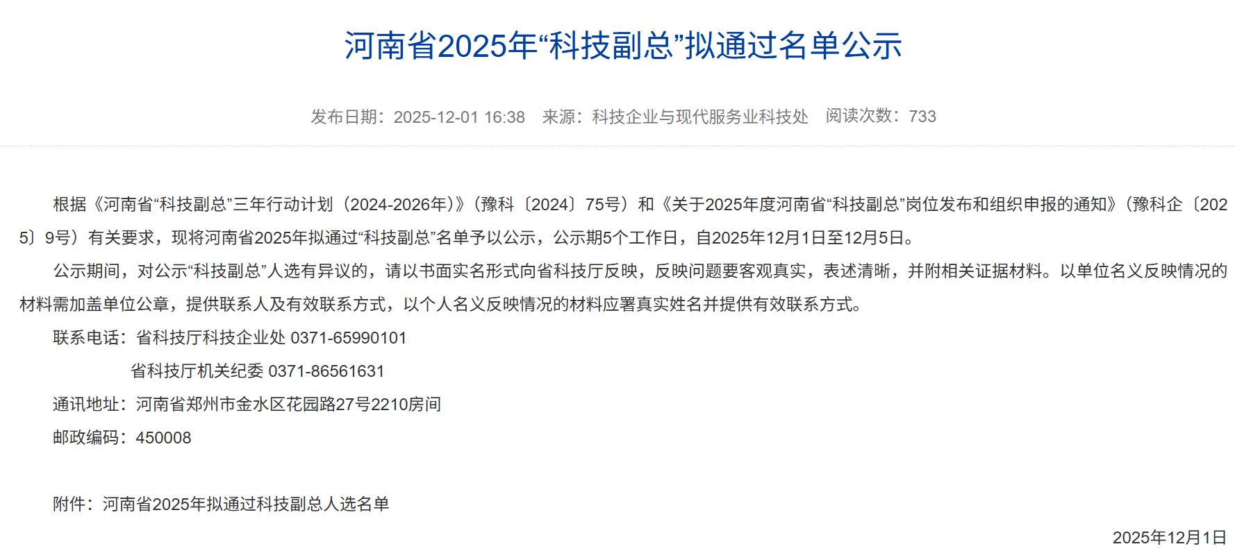 认真组织开展了河南省2025年“科技副总”申报工作。经教师自主申报、属地科技管理部门初审合格后,通过系统推送至省科技厅。经省科技厅会同有关部门组织评审,全省共遴选确定“科技副总”1518人,其中我校共有130名教师入选。黄漫
