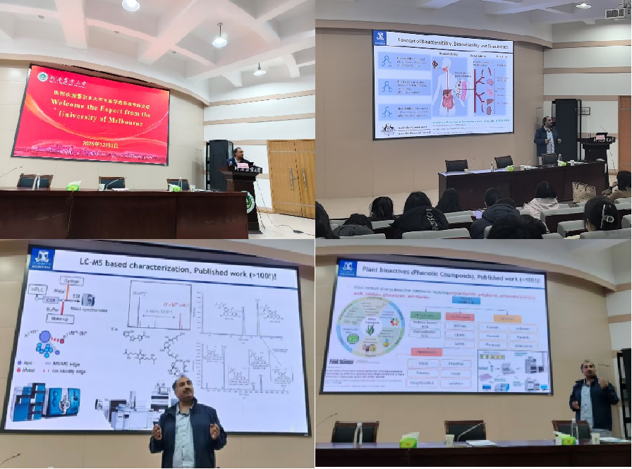 (通讯员 詹丽娟)12月5日,澳大利亚墨尔本大学农业、食品和生态系统科学学院(School of Agriculture, Food and Ecosystem Sciences, University of Melbourne)Hafiz Suleria副教授应邀莅临黄漫