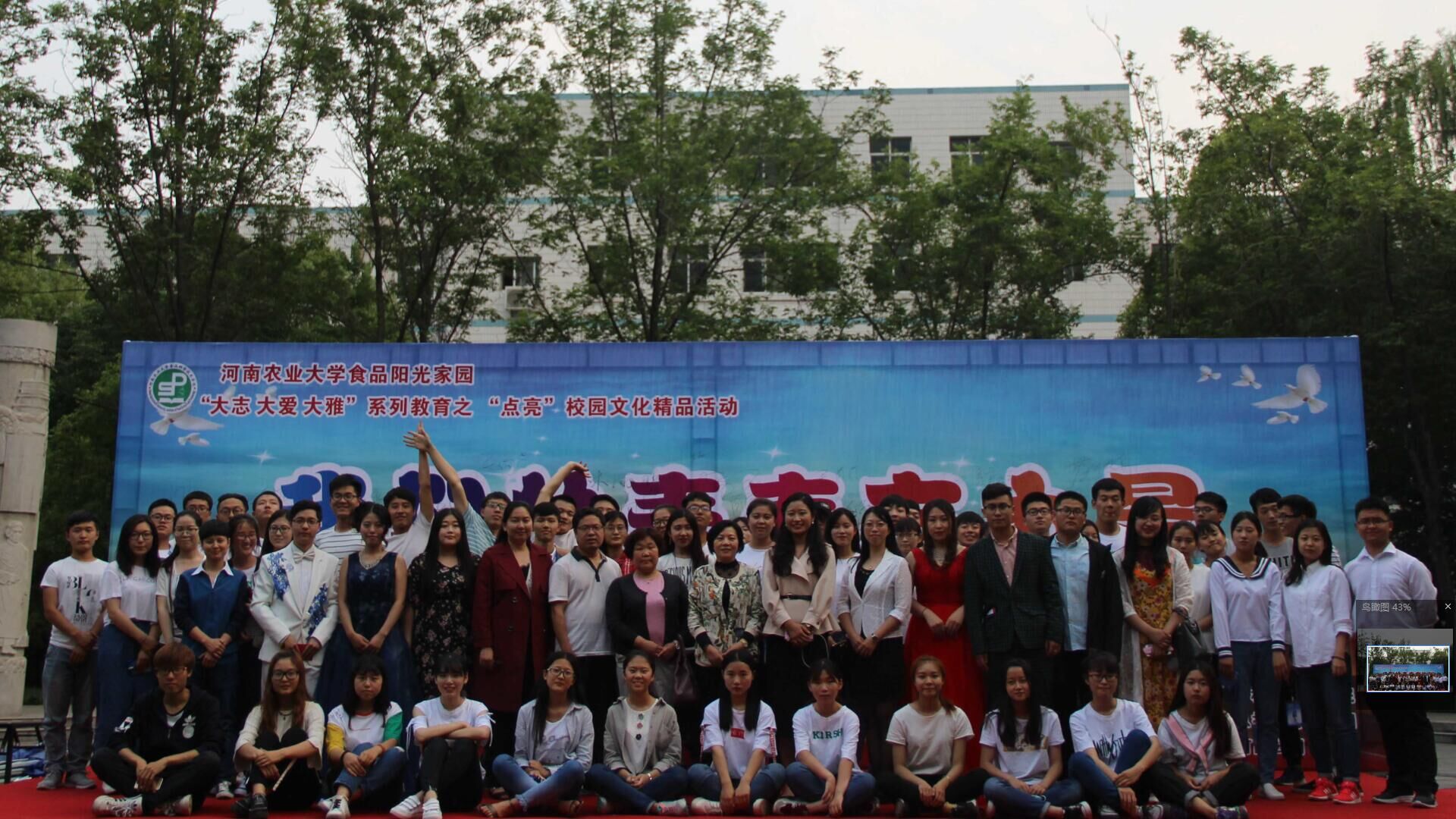 “大志大爱大雅”系列教育之“点亮”校园文化精品活动“我们的青春有力量”2017届毕业生草地音乐节在文化路校区牧医广场盛大开幕。校党委副书记、工会主席褚金海,校学工部部长李书民,校团委书记马菲,校党委宣传部副部长张勇民,院党委书记杨喜洲,院长赵改名及学院全体教职工出席活动,学院2017全体届毕业生参加此次活动。