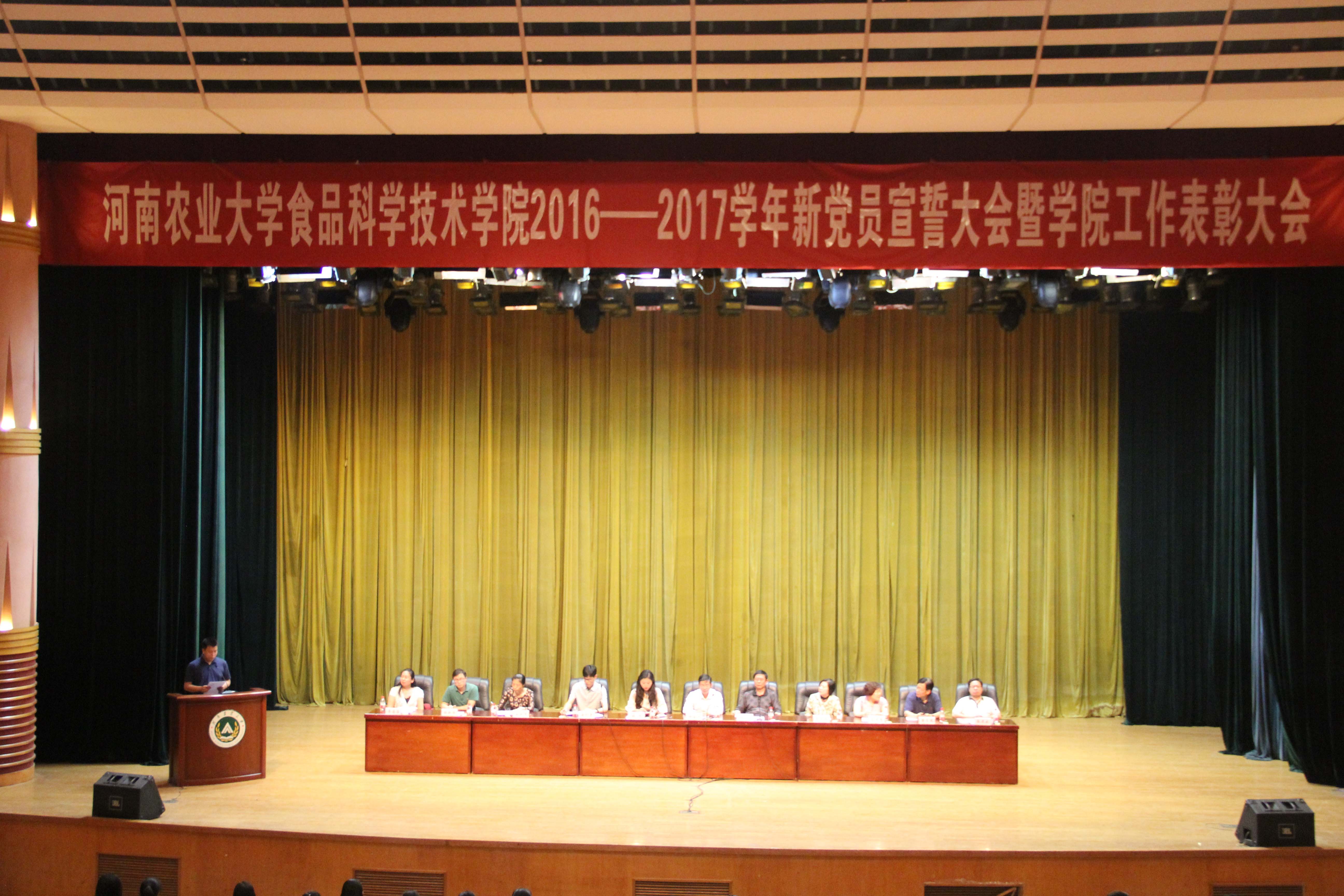 全体师生在文化路校区大礼堂隆重召开2016-2017学年新党员宣誓大会暨学院工作表彰大会。