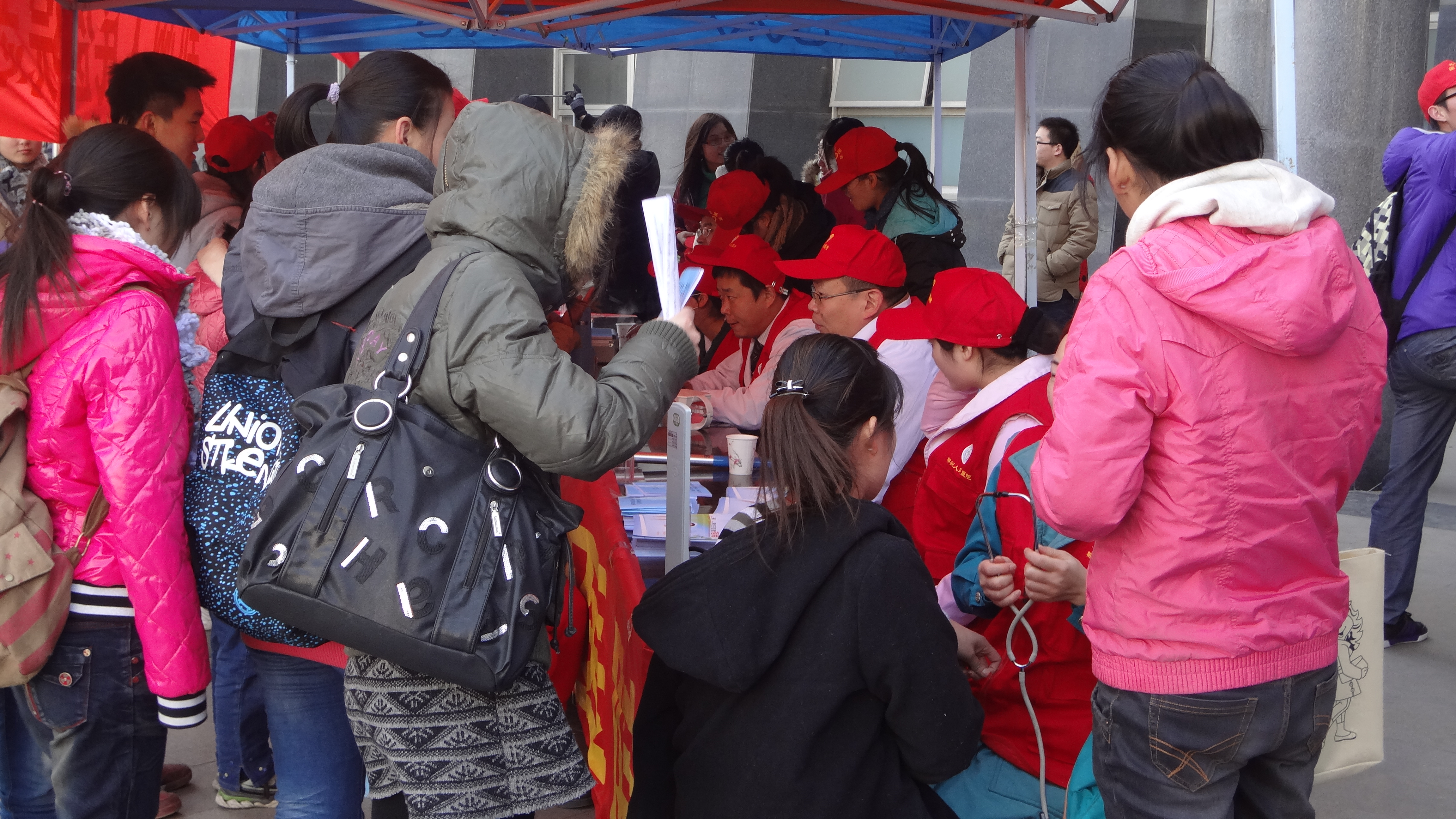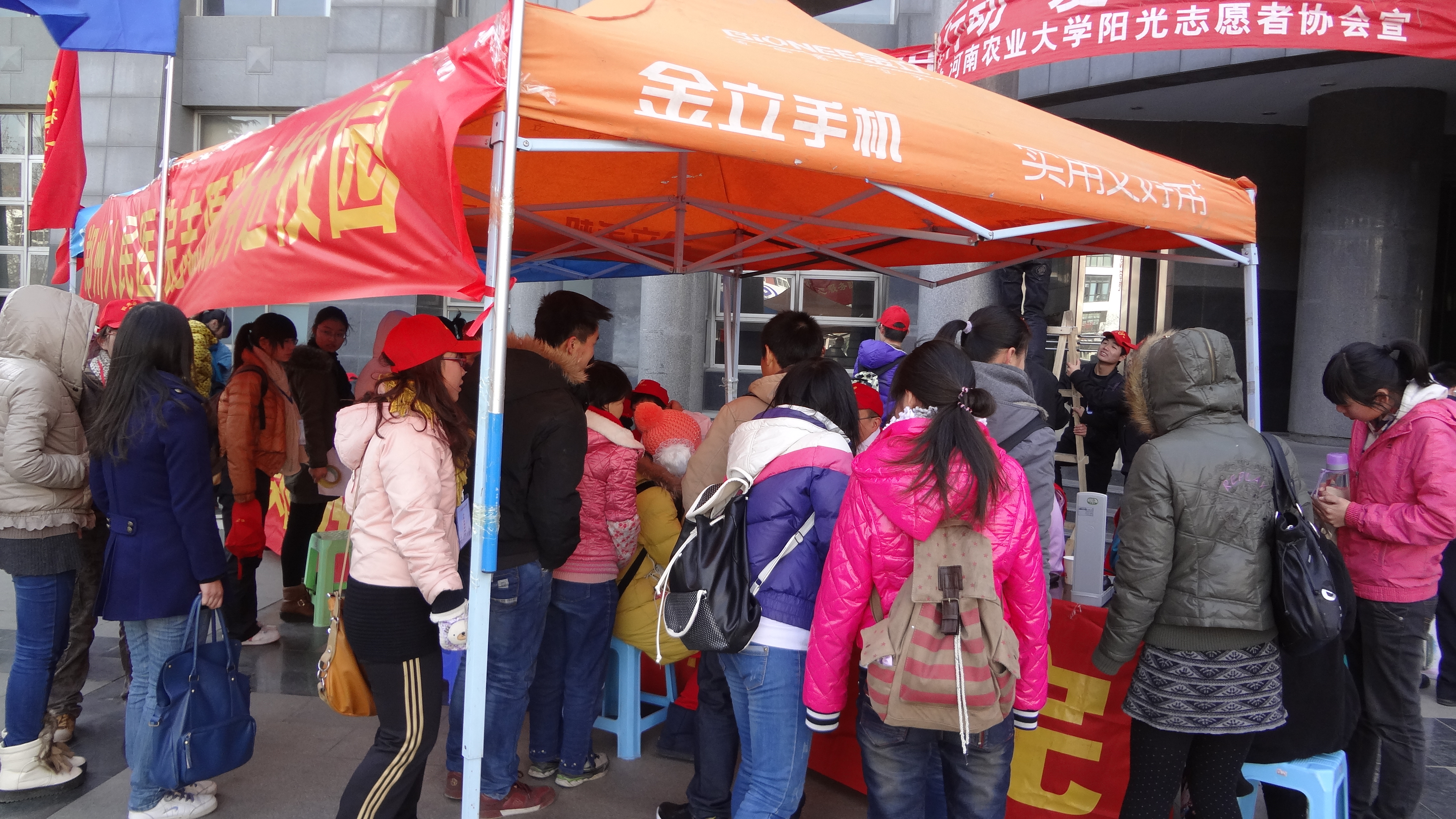 阳光志愿者协会联合郑州市人民医院于12月5日在我校工程楼东侧举行了“爱心义诊,冬季养生”活动。