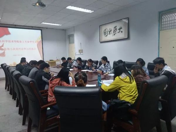 食工党支部组织委员李达组织学习第七次党代会,食工党支部全体成员参加会议。