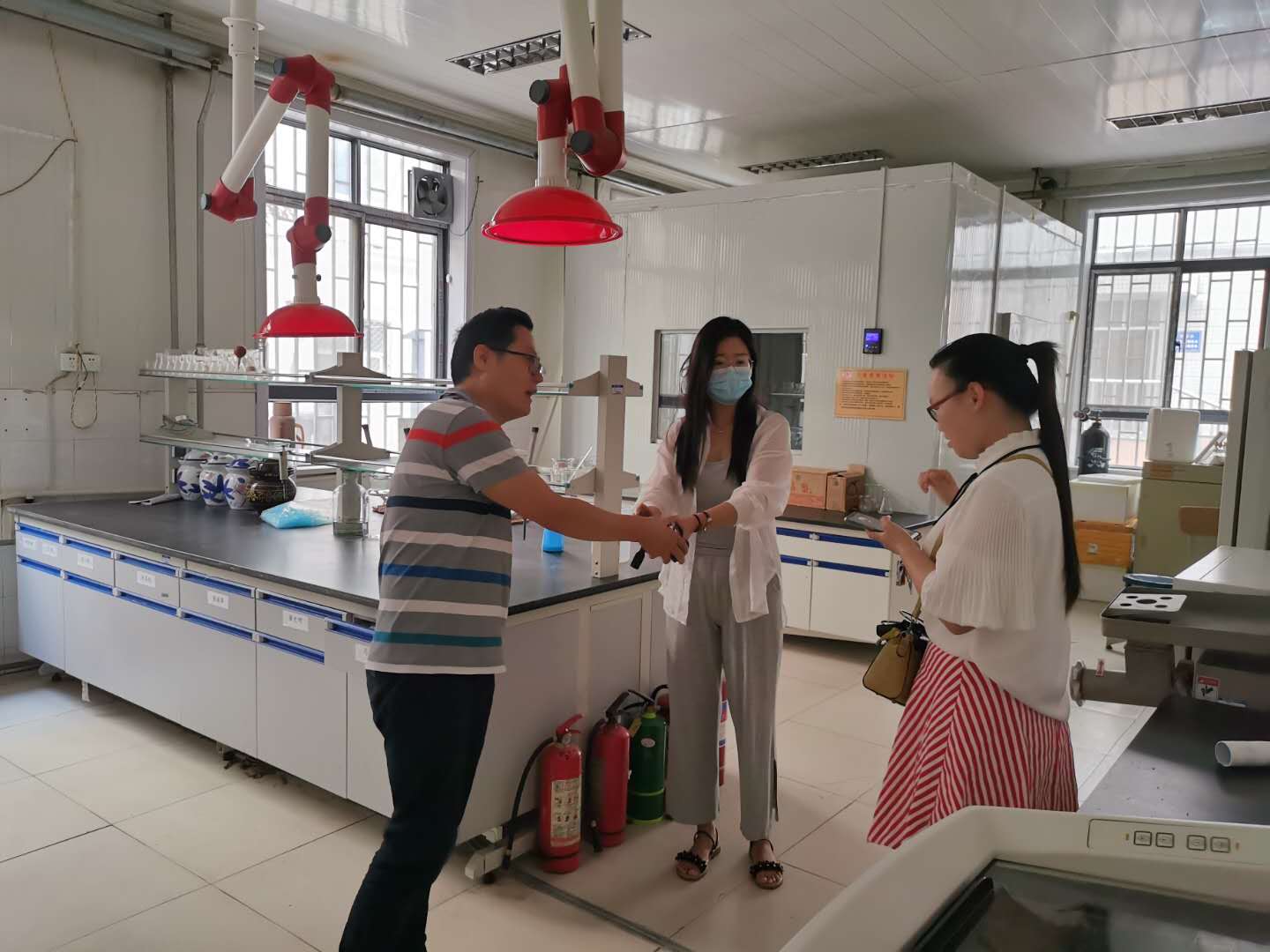 8月21日,黄漫 党委副书记魏玮、办公室主任谢新华及团委书记李蓓蓓深入实验室开展卫生检查工作。