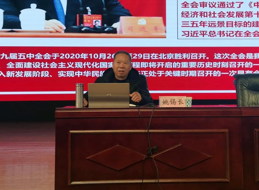 马克思主义学院姚锡长教授为学院师生宣讲党的十九届五中全会精神。宣讲会由院党委副书记李蓓蓓主持。