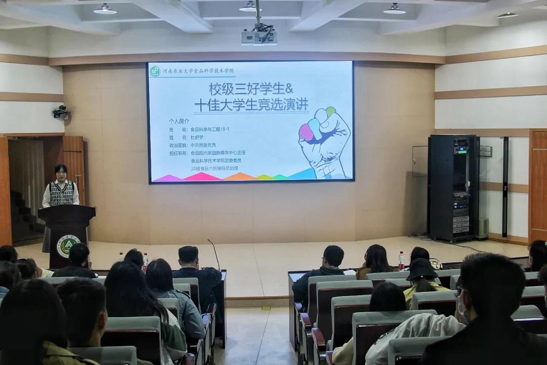 评选开始前,院团委副书记陈翔对评选要求进行了说明。在评选现场,竞选者向大家分享了自己的学习、工作和社会实践经历,从德、智、体等方面进行了全方位的阐述,充分彰显了他们勤奋务实,工作认真的态度和向党组织靠拢的决心,也向评委和观众展现了他们良好的精神面貌和青春风采,为其他同学树立了榜样和示范。