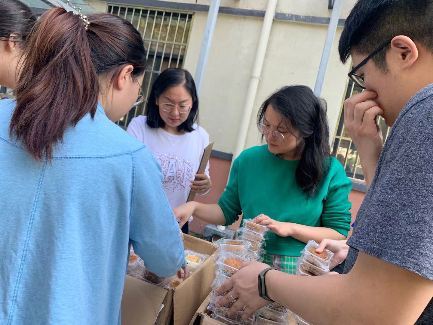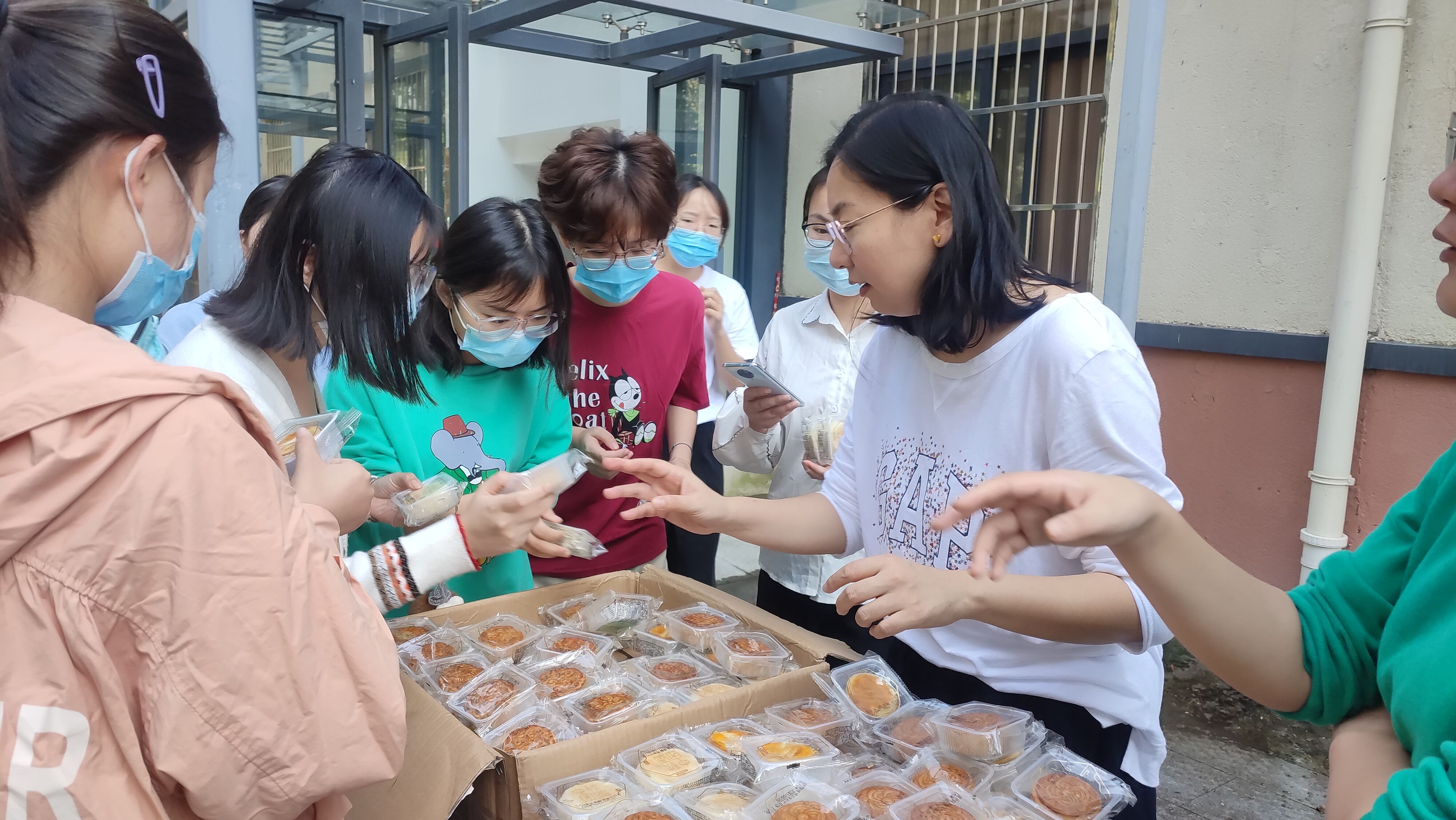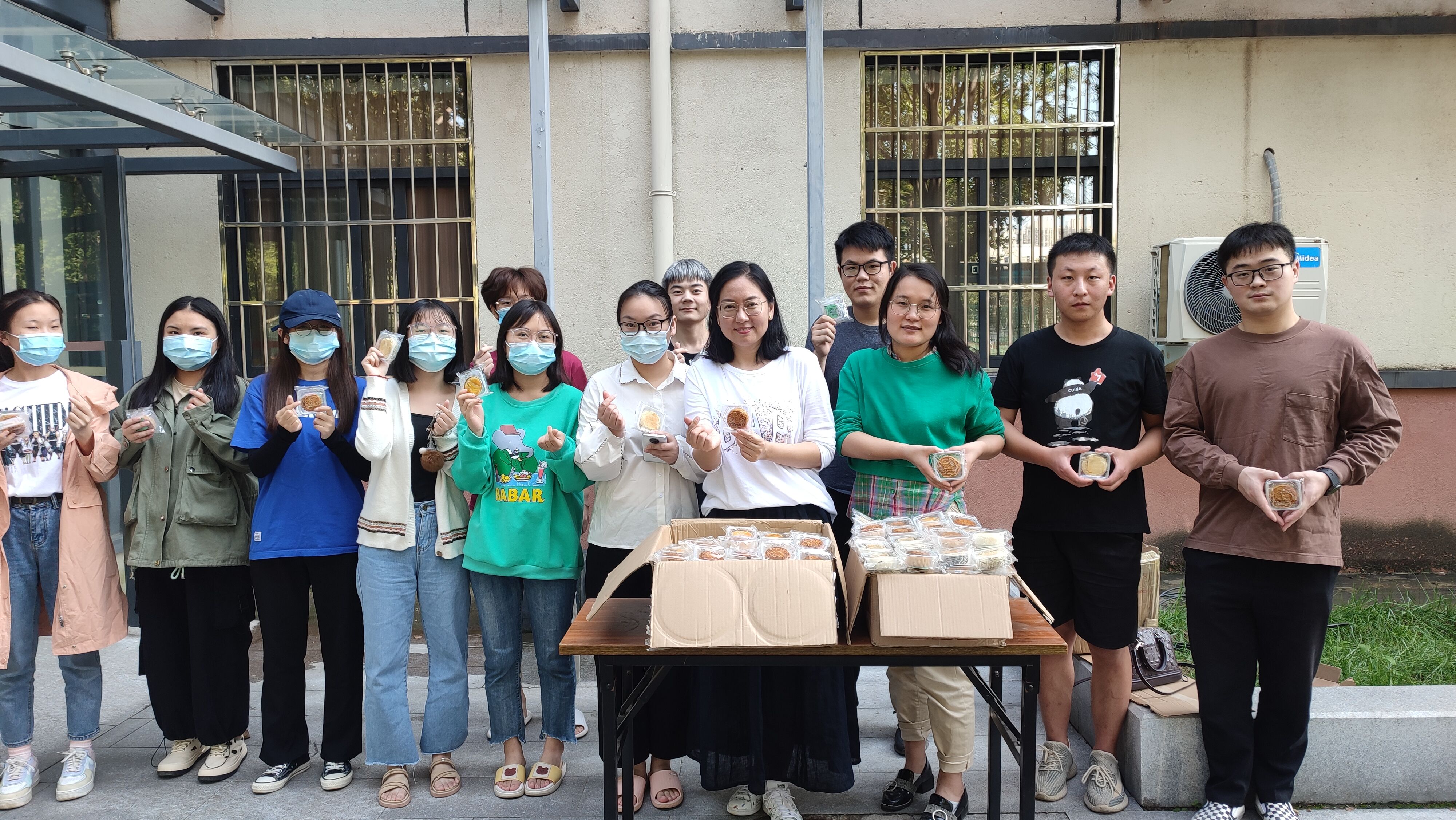 为让莘莘学子感受到家的温暖,享受到在校的过节快乐,李蓓蓓与同学们先后在实验楼、宿舍楼前分别向留校的研究生、本科生发放月饼,同学们皆前来领取,自选口味。黄漫