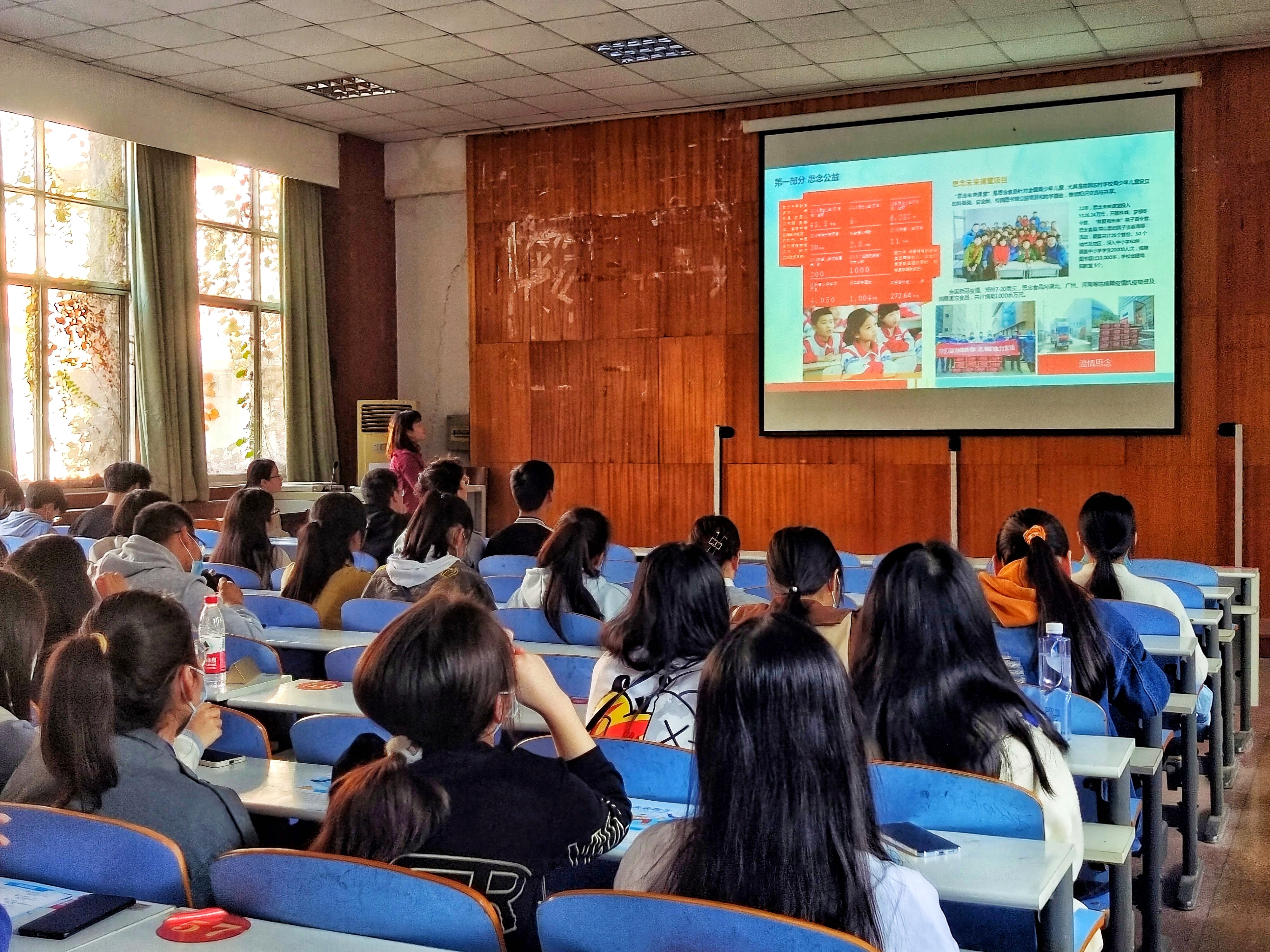 沈艳娜从公司简介、发展历程、思念文化等多个角度向同学们介绍了公司情况,让同学们进一步了解了公司的黄漫和企业氛围。随后,她对同学们关心的晋升路线、福利待遇等内容进行了详细讲解,她讲到,思念公司对于管培生有丰厚的优惠待遇,致力于让同学们在工作中提升自己,充分发挥个人能力,实行了721培训等多种人才培养方法,并针对同学们的不同能力和需求制定了不同的发展计划。最后,薛晗、司苗苗针同学们提出的一些问题进行了一一解答。