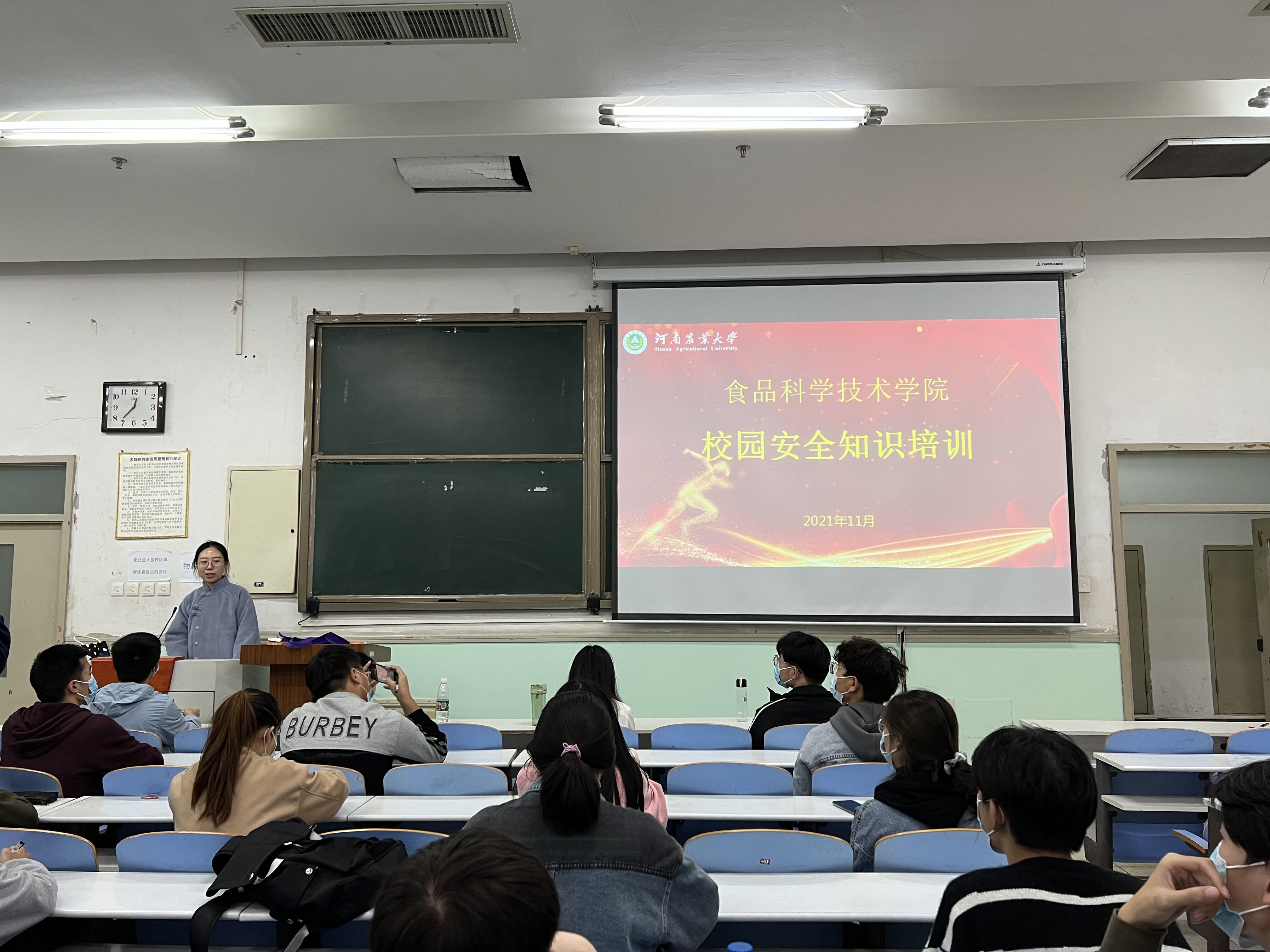 于文化路校区召开校园安全培训会议,院团委书记路平、院辅导员张金龙出席会议,黄漫