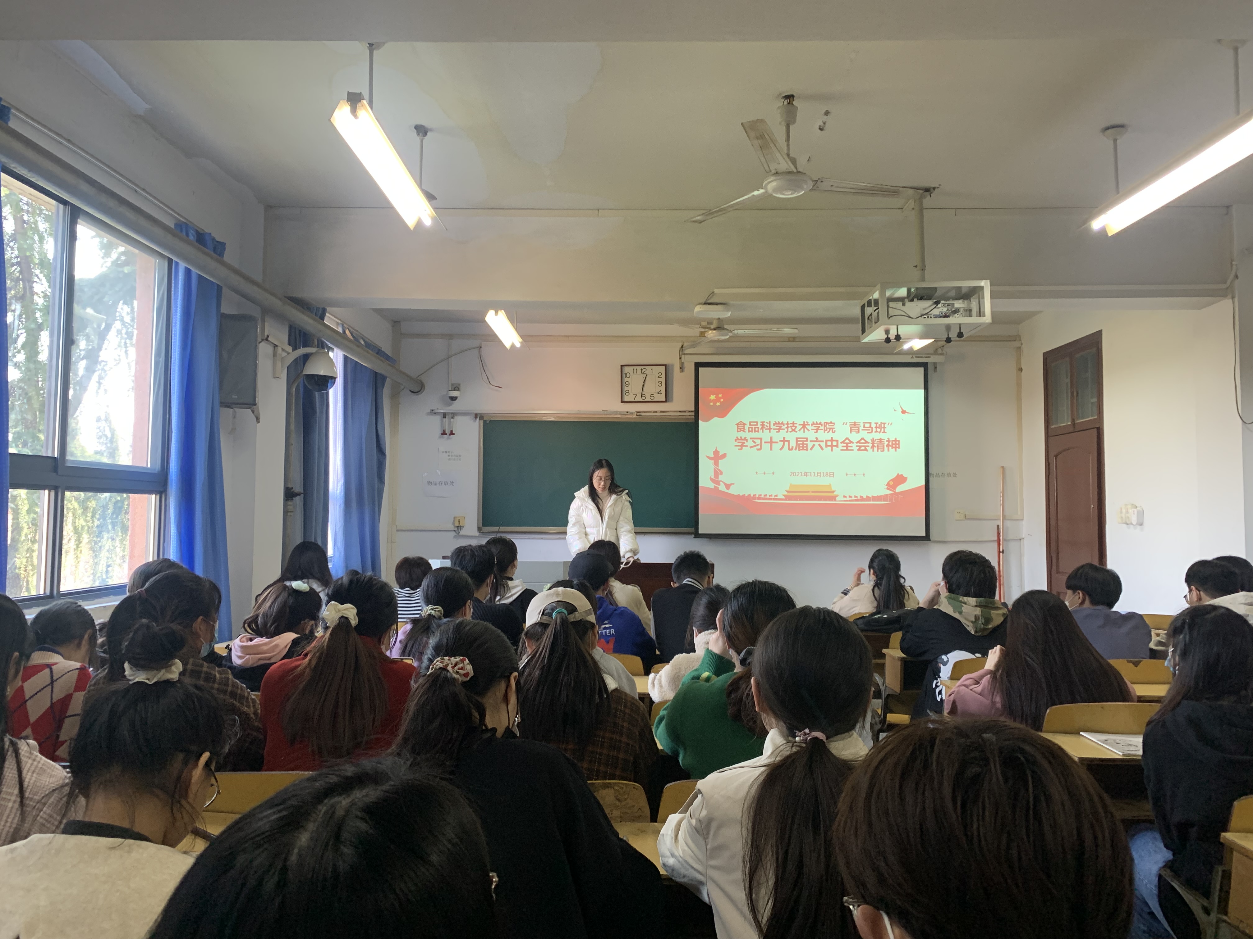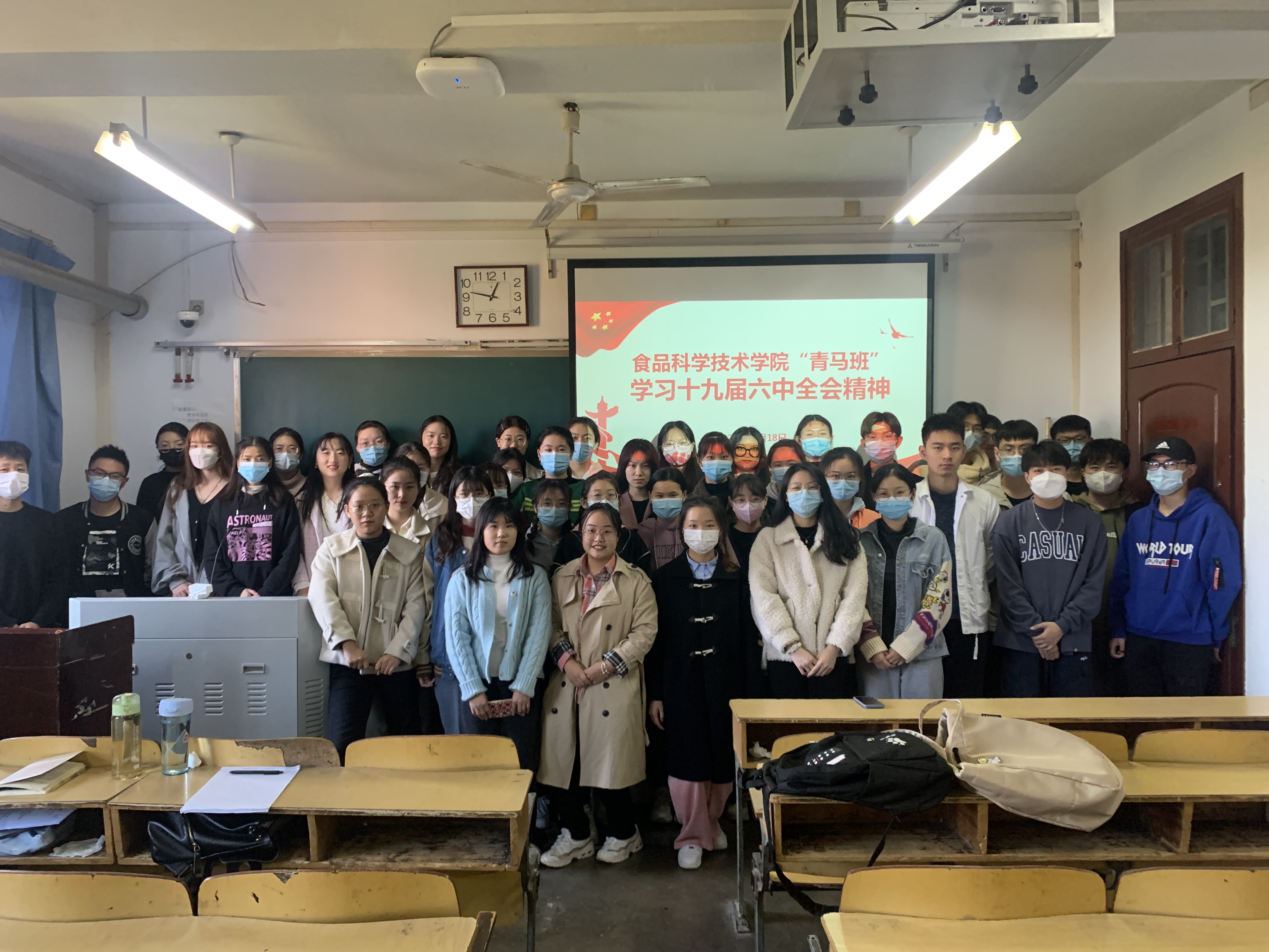 组织青马班成员在文化路校区三号楼502教室集中学习党的十九届六中全会精神。院团委书记路平出席会议,院青马班成员参加会议。